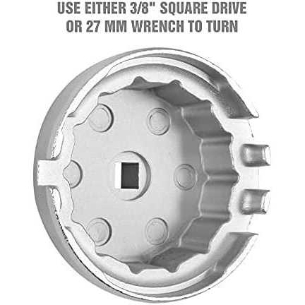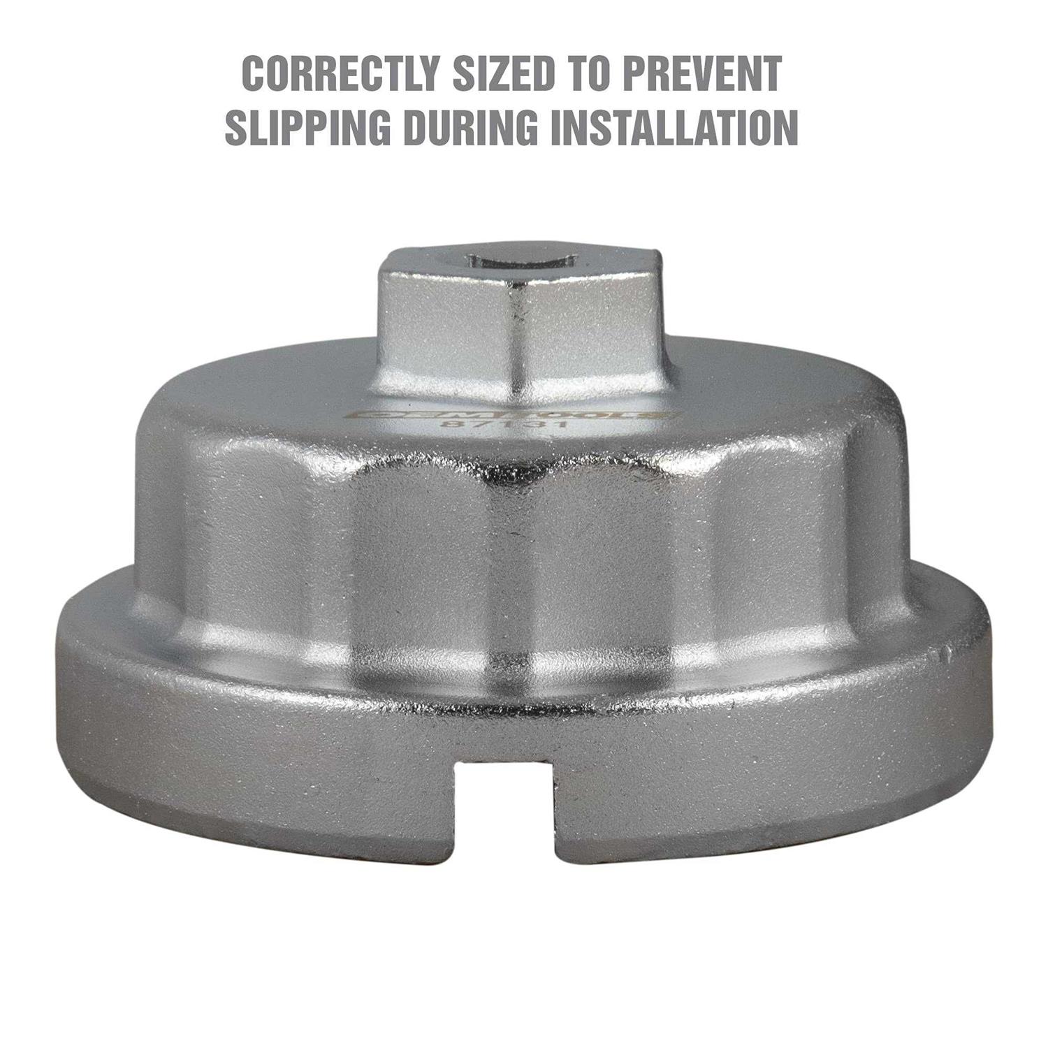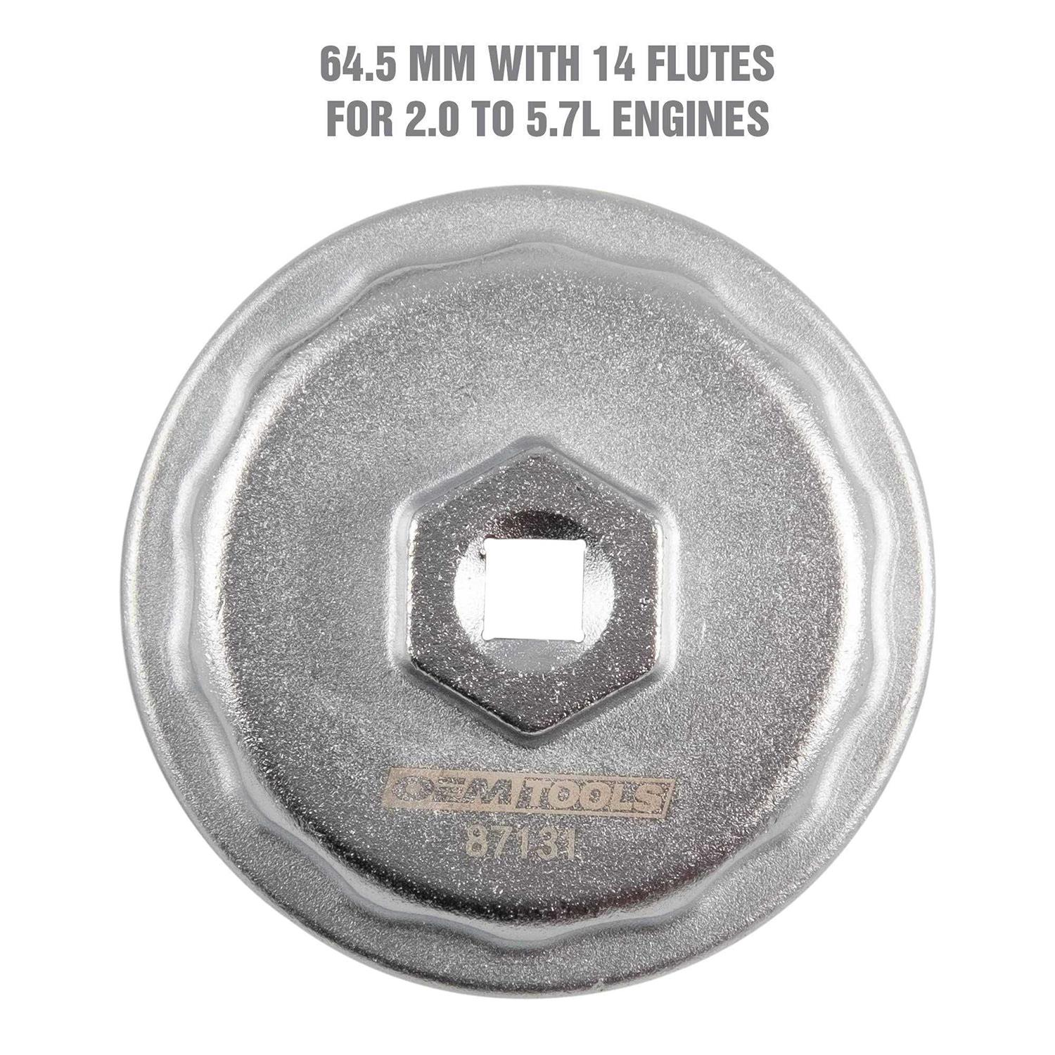 The OEMTOOLS 64.5 mm, 14 Flute Oil Filter Wrench is perfect for removal and replacement of aluminum threaded caps that retain oil filter cartridges. It is perfect for use with Toyota Camry, RAV4, Tacoma, Highlander, Sienna, Tundra and more. It is designed to remove overtightened oil filter housings for easy replacement, and correctly sized to prevent slipping during installation.