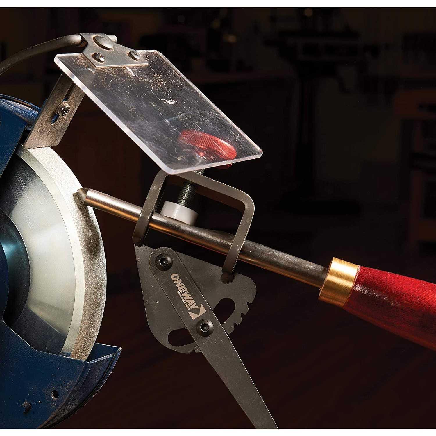 The Wolverine Vari-Grind will properly shape and maintain the edge on standard bowl gouges, the modern side grind (also known as the Ellsworth grind, Liam O’Neil, or Irish grind), and the traditional fingernail shape for spindle work detailing. ONEWAY has spent considerable time and effort to develop a system which will consistently produce sharp, repeatable geometries on turning tools for the wood turner. Three tools that are very popular and useful are the fingernail shape, the traditional bowl gouge and the side grind configurations. These shapes however are difficult both to grind and to maintain. This single jig will produce every shape from the first mentioned fingernail grind right up to the side grind and everything in between to suit your needs.