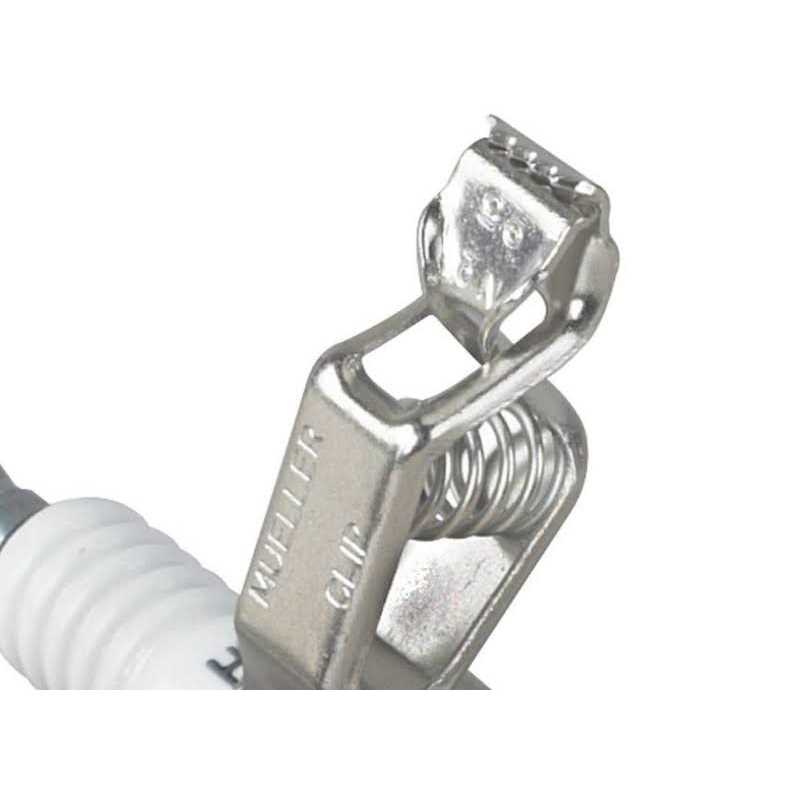 - Simply attach plug wire to end then use built in clip to attach to ground