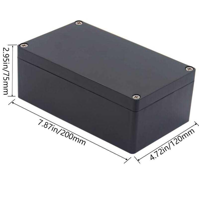 Otdorpatio Project Box ABS Plastic Black Electrical Boxes IP65 Waterproof DIY Electronic Junction Box Power Enclosure 7.87 x4.72 x2.95 inch (200x120x75 mm) Product Features Size- Outer size of the project box: 7.87″x 4.72″x2.95″(200 x 120 x75 mm); Inner size of the project box:7.59″ x4.4″ x 2.67″ (192 x112 x68mm) Superior Electrical Safety IP65 Rated Indoor & Outdoor Waterproof Junction Box protect against dust, corrosion and splashing water, helps keep all your home electrical equipment Clean & Dry. Superior Durable- Made of high-quality ABS material that offers outstanding impact resistant and electrical insulation, Moisture-proof, sunscreen, anti-corrosion, durable for years use. can keep your equipment well-protected in harsh environments. Easy for DIY- This sturdy junction box can be drilled and shaped easily without cracking, so its also suitable for your various DIY projects. Wild ApplicationWidely used for electronic projects, instrument enclosure, power supply units, temperature controller box, etc. ****Package Content : 1xWaterproof Junction Box****