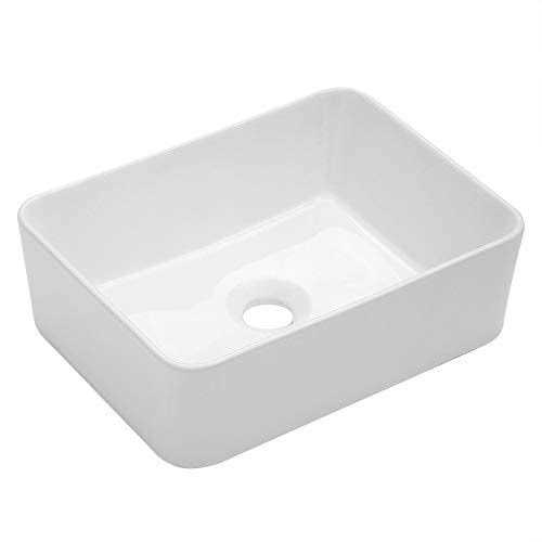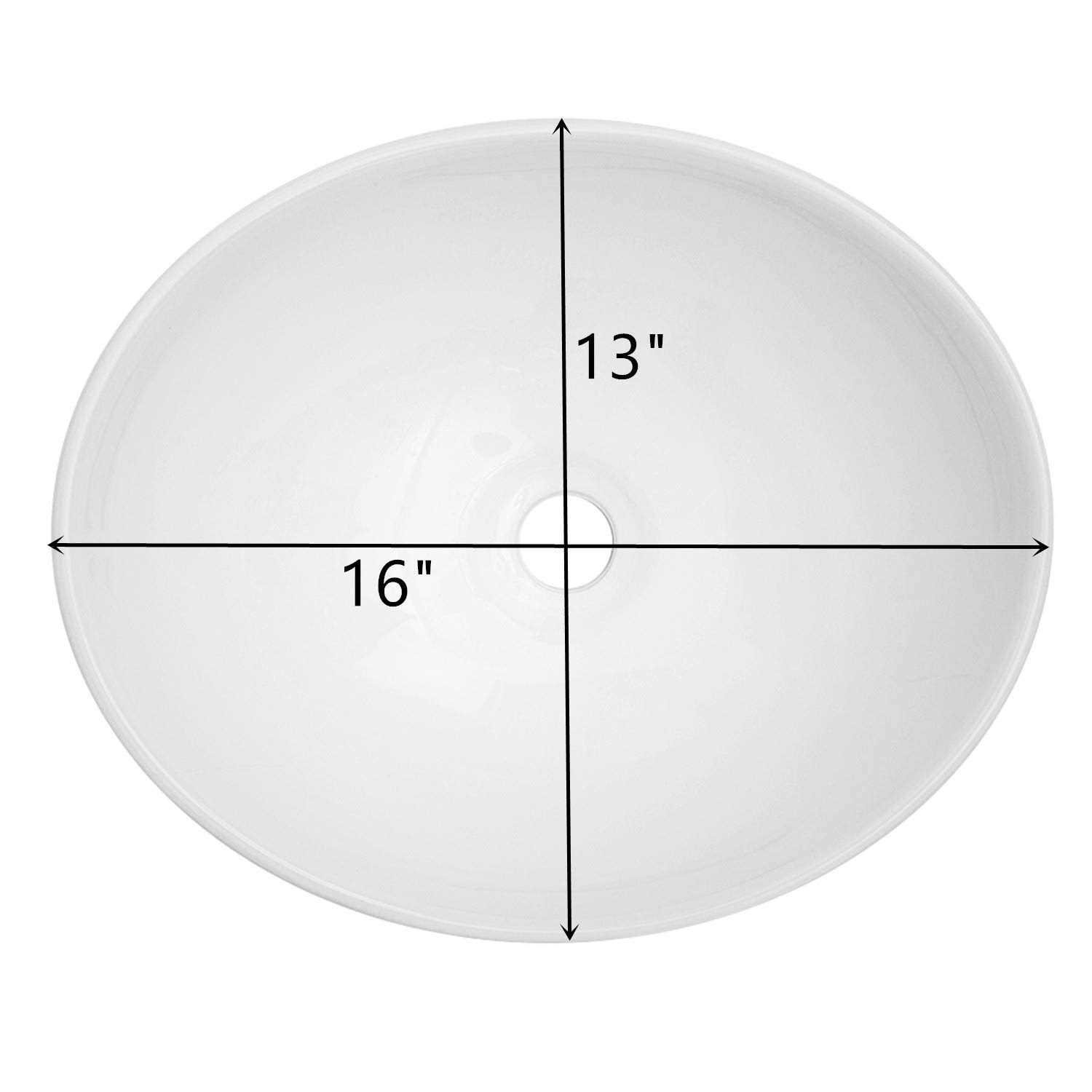 Kichae 16″x 13″ Vessel Sink – 16 inch Modern Oval Egg Shape Bathroom Vanity Bowl Counter Top, White Porcelain Ceramic Vessel Vanity Sink Above Counter