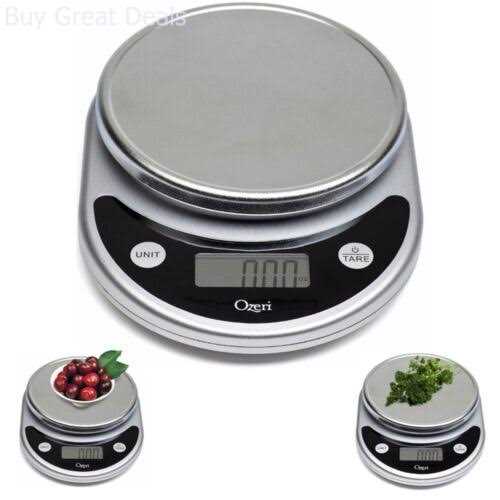 The new Pronto Digital Kitchen Scale by Ozeri is a true multifunction scale for the kitchen and home. The ultimate companion for the serious cook, the Pronto is built with the latest generation in sensor technology to ensure accuracy and immediate responses for the fast-paced chef. It features a newly enlarged weighing platform – one of the largest in its class, to accommodate larger bowls and food items. Elegantly designed with a refined chrome finish, the Pronto also doubles as a postage machine for your mail or a scale for your children’s science projects. The Pronto’s widescreen LCD displays results in grams, ounces, pounds, kilograms, and the large Unit button lets you change the unit of measurement with push-button ease. Manufactured to rigorous quality specifications, the Pronto weighs up to 11 pounds (5050 grams) in graduations of just 0.05 ounces (1 gram) to help you achieve your diet and weight goals. The Pronto also features an ever handy Tare button which automatically subtracts the weight of any bowl or container to calculate the net weight of your ingredients. The Pronto’s Tare and Unit buttons provide an audible and tactile click confirmation so you never have to push twice when preparing meals in a hurry. The Pronto’s aesthetic design complements any kitchen dcor, and it cleans quickly and stores easily.