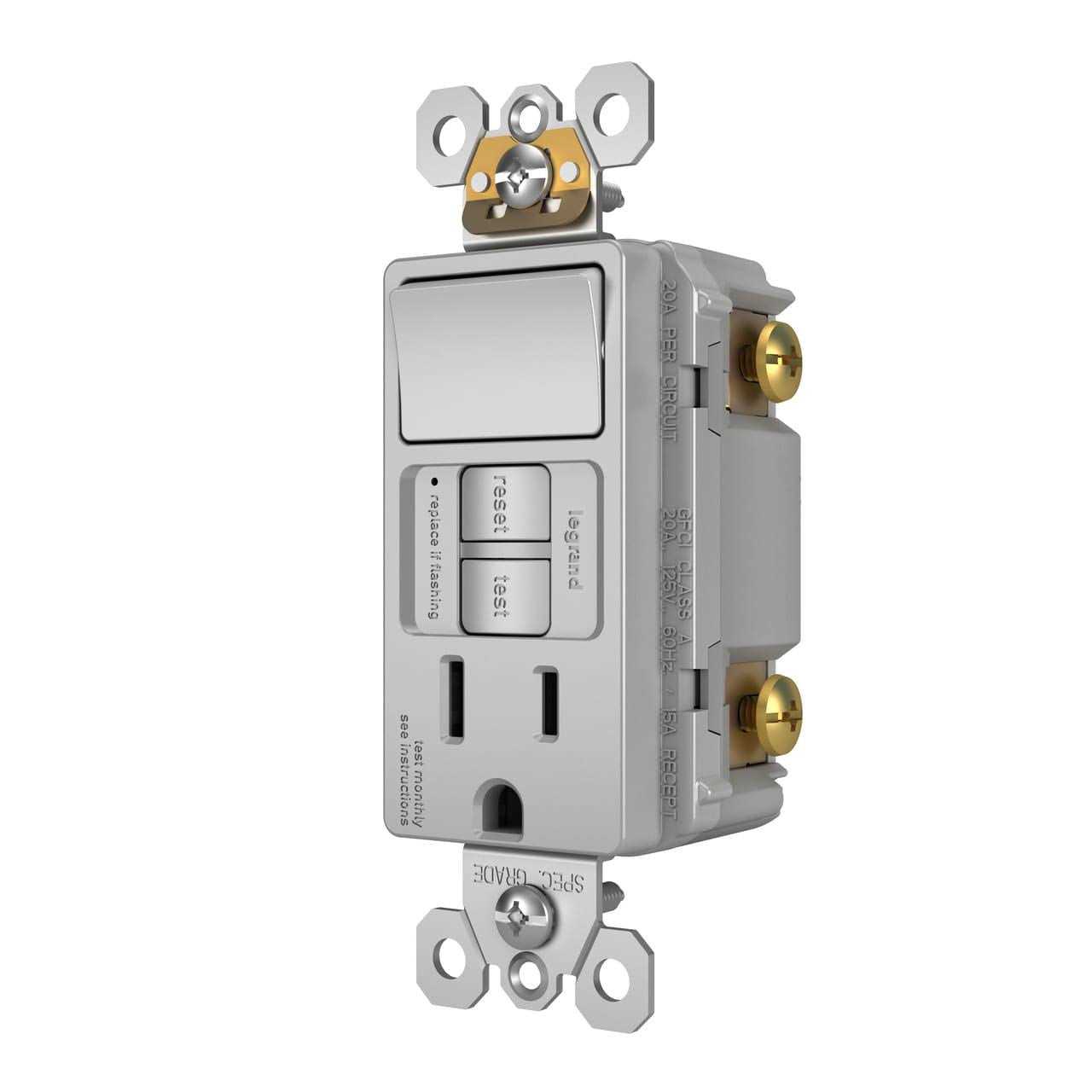 P&S 1597SWTTRGRY Combination Tamper-Resistant 15A Self-Test Single-Pole Switch/GFCI