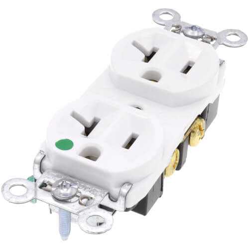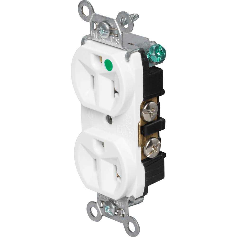 Pass & Seymour Heavy-duty hospital grade receptacle in white color features high quality thermoplastic construction for added durability or strength. The 2-Pole impact resistant receptacle has a voltage rating of 125 Volts. The three-wire device has easily accessible break-off, line contact connecting tab for split circuit wiring and has current rating of 20 Amps. It is has zinc-plated steel strap, nylon face and heat-treated triple-wire brass power contacts to offer resistance against corrosion. Receptacle has internal screw-pressure-plate and back/side wire line tri-drive terminals for easy installation and measures 1.322 Inch x 0.780 Inch x 3.281 Inch. Device includes wire size of 14 – 10 AWG and reliable auto-ground clip to assure positive ground. It is ideal for residential and commercial applications. Receptacle is UL 498 listed and CSA certified.