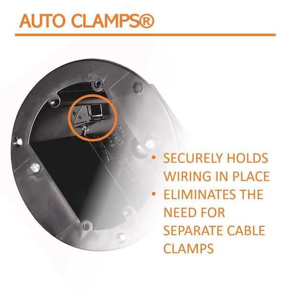 Legrand Slater ceiling boxes are made of durable, time tested materials. The screw lock holds screws in box until they are needed so there is no lost hardware. There is also no need for separate cable clamps with Auto/Clamp. Durable, impact-resistant thermoplastic box Auto/clamps eliminate the need for separate cable clamps Includes device mounting holes Swing bracket adjusts from 1.25 in. to 0.125 in.