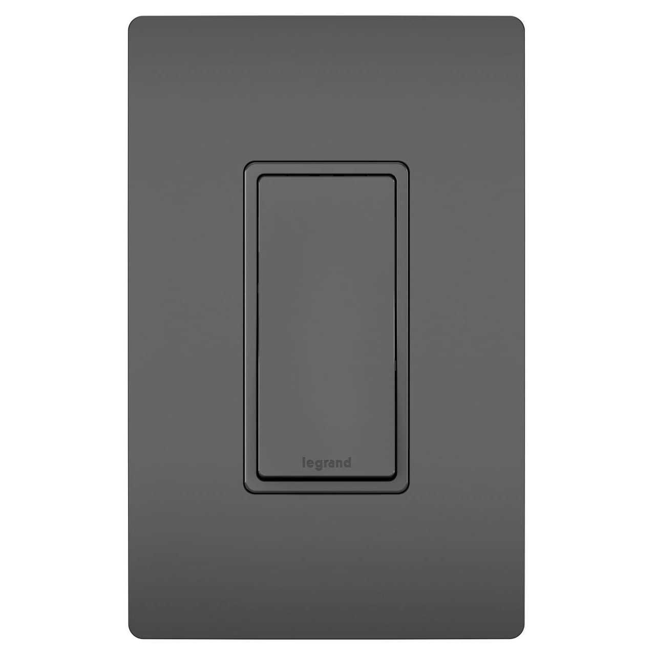 Replaces any standard 1-pole switch with ease. Smooth paddle action with a finish that matches other radiant devices and wall plates. Captivated mounting screws offer hassle-free installation. High-impact resistant thermoplastic construction. Narrow back body leaves more room for wires in the electrical box. Side wire terminal screws #12 – #14 AWG solid wire; push wire terminals accept #14 AWG solid cooper wire only. Enhance design with a radiant screwless wall plate.