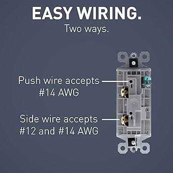 - Side wire terminal screws #12 – #14 AWG solid wire; push wire terminals accept #14 AWG solid cooper wire only.