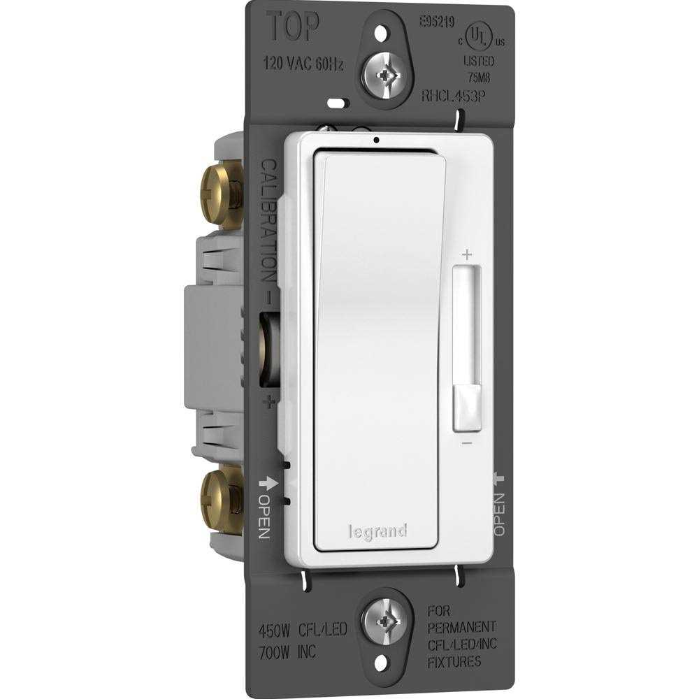 Transform your home lighting with the Legrand WSCL453PTC dimmer switch. This sleek and modern switch from the WS Series allows you to effortlessly adjust the brightness of your lights to create the perfect atmosphere. With its preset feature, you can easily save your favorite lighting levels and recall them with just a touch. Available in Ivory, Light Almond, and White, this switch seamlessly blends with any room decor. Designed for compatibility with 120V systems, it can handle up to 450 watts of power, making it suitable for a wide range of lighting fixtures. Whether you need a 3-way or single pole installation, this dimmer switch is versatile enough to meet your needs. Plus, it’s specifically designed for use with CFL and LED bulbs, ensuring energy efficiency and long-lasting performance. Upgrade your lighting control with the Legrand WSCL453PTC dimmer switch today.