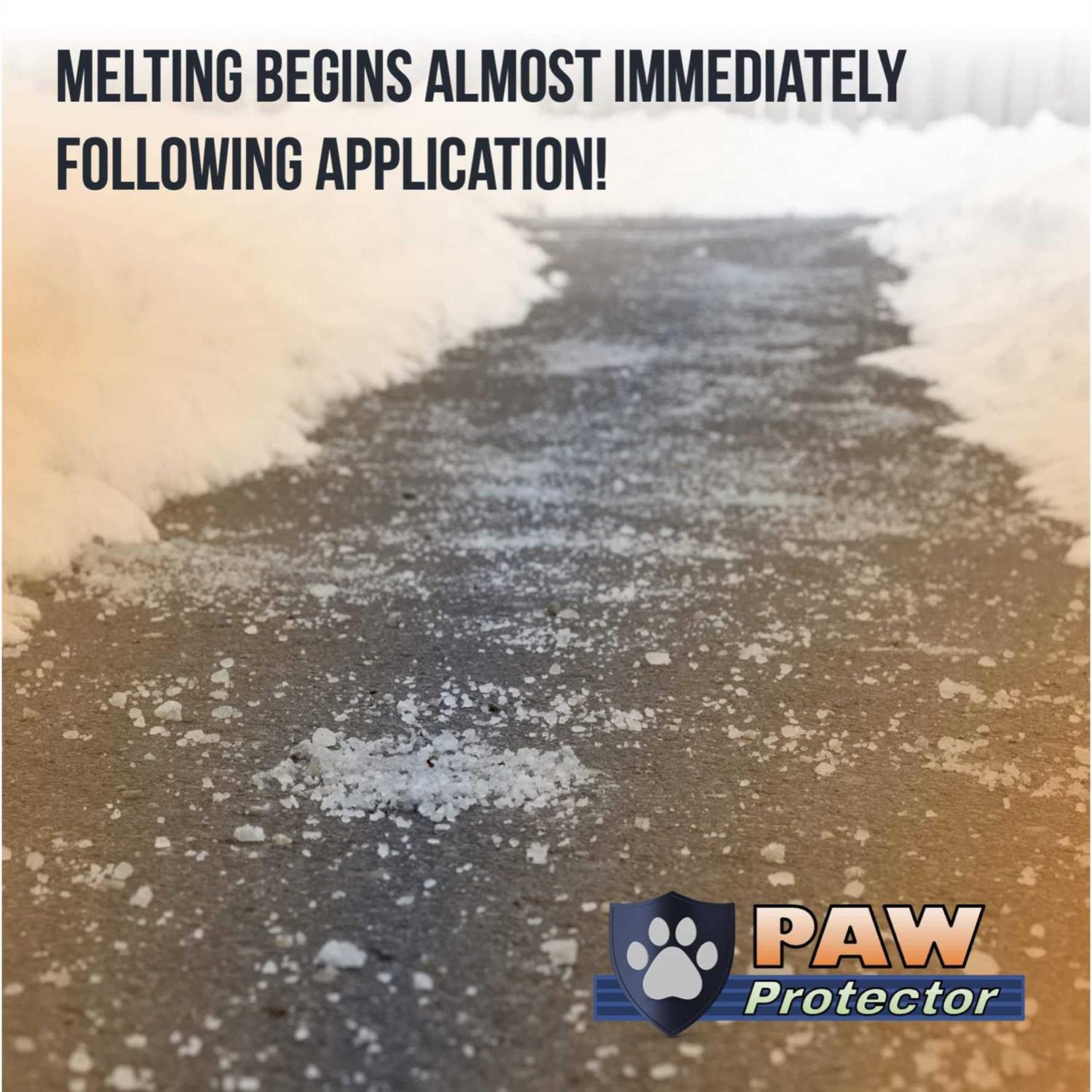 Snow & Ice Melters by Home and Country USA. Details:When choosing a salt or ice melt product that can handle the harshness of the winter along with the responsibility to protect our four legged friends along with our properties, look know further than Paw Protector. Paw Protector provides exceptional melting power while putting your pet first and foremost. With a melting power to -22 degrees Fahrenheit, Paw Protector will work in the harshest climates without blinking an eye!