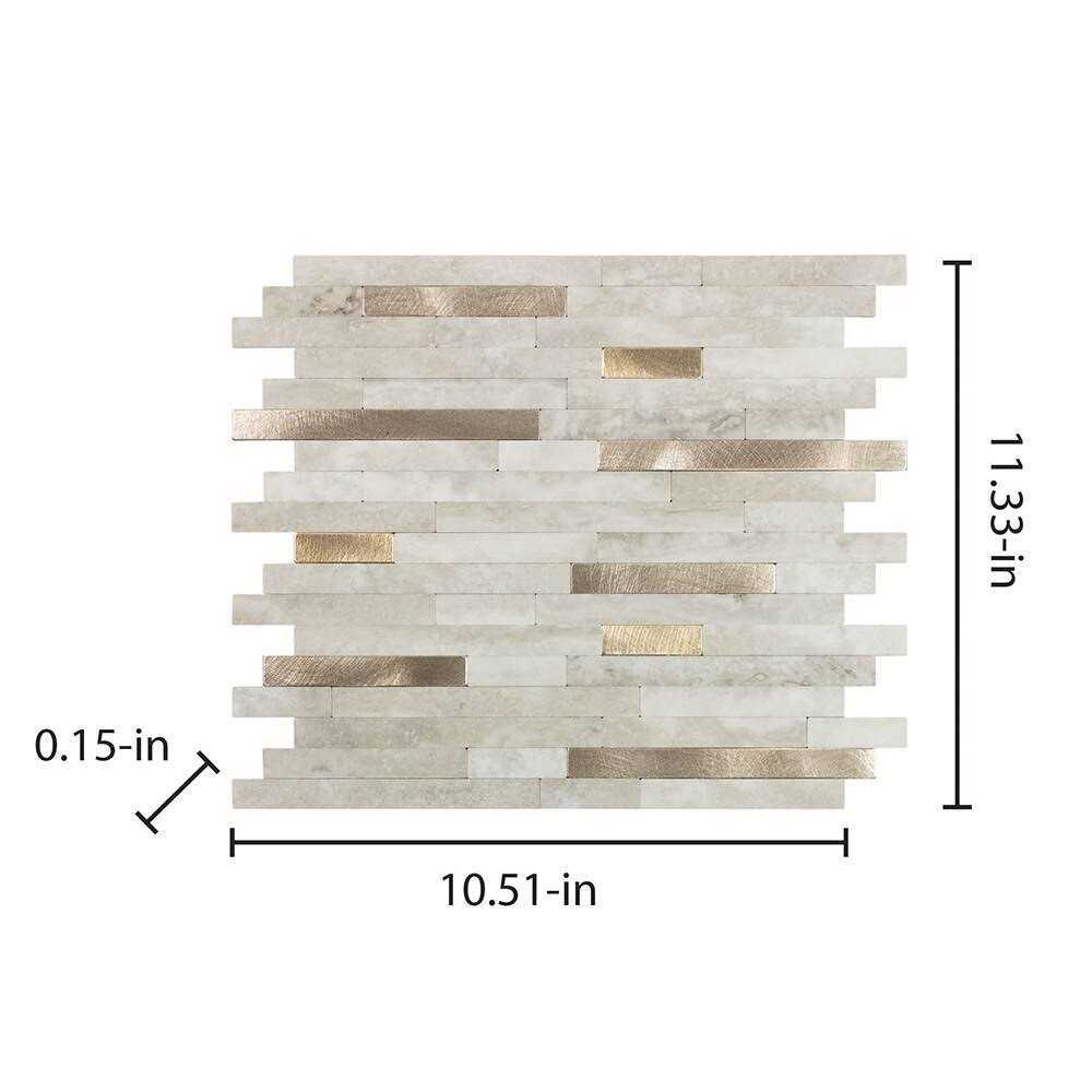 Peel&Stick Mosaics Golden Oasis Beige and Gold 11-in x 13-in Matte PVC Linear Stone Look Peel and Stick Wall Tile (0.827-sq. ft/ Piece)