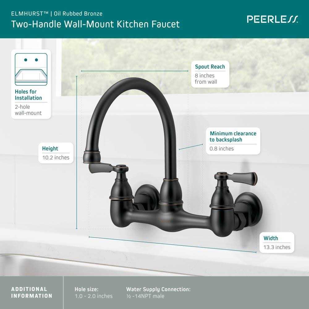 Peerless P2765LF-OB Elmhurst Two-Handle Kitchen Faucet Wall-Mount, Oil Rubbed Bronze