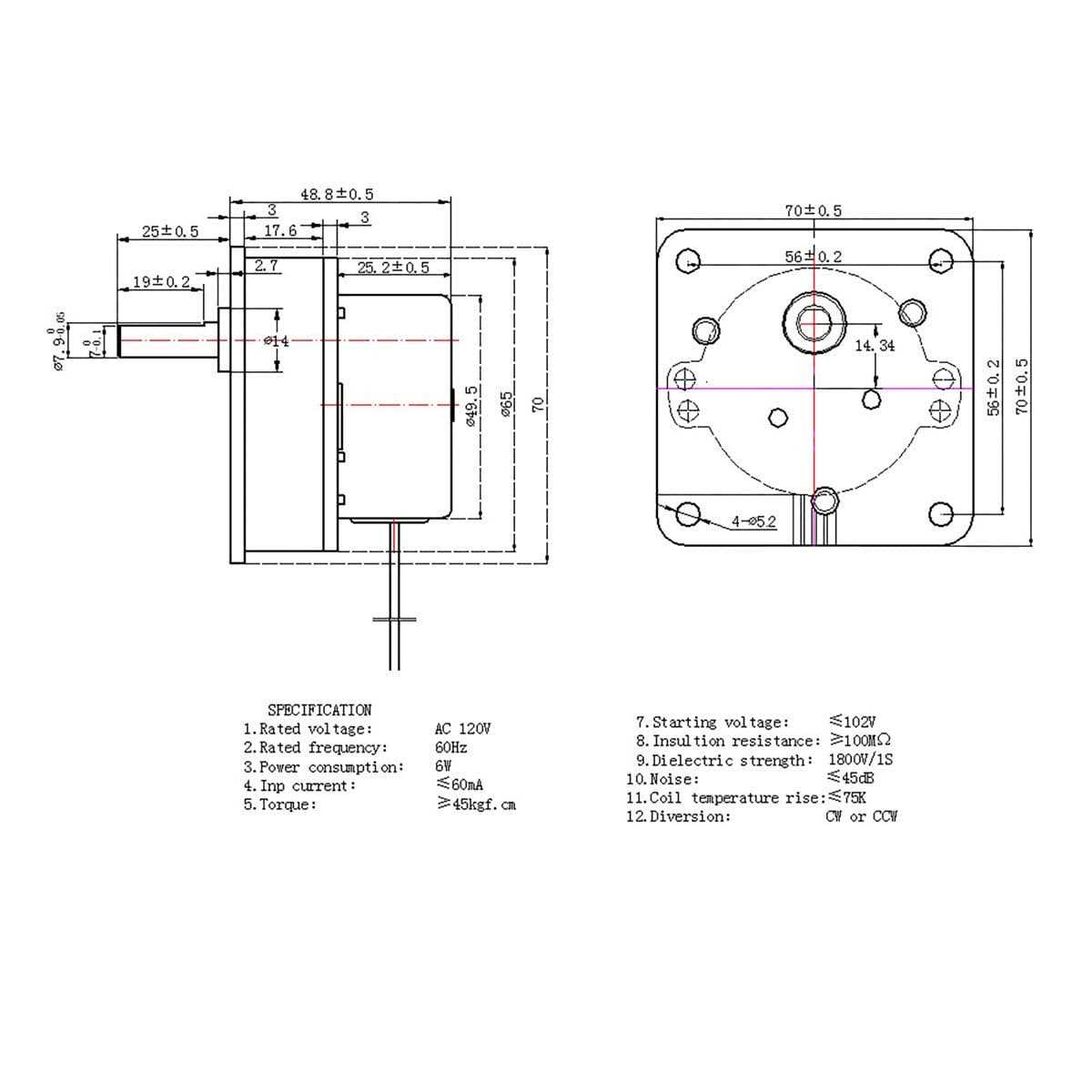 - 【SPECIFICATION】120V, AC. 2.4 RPM.