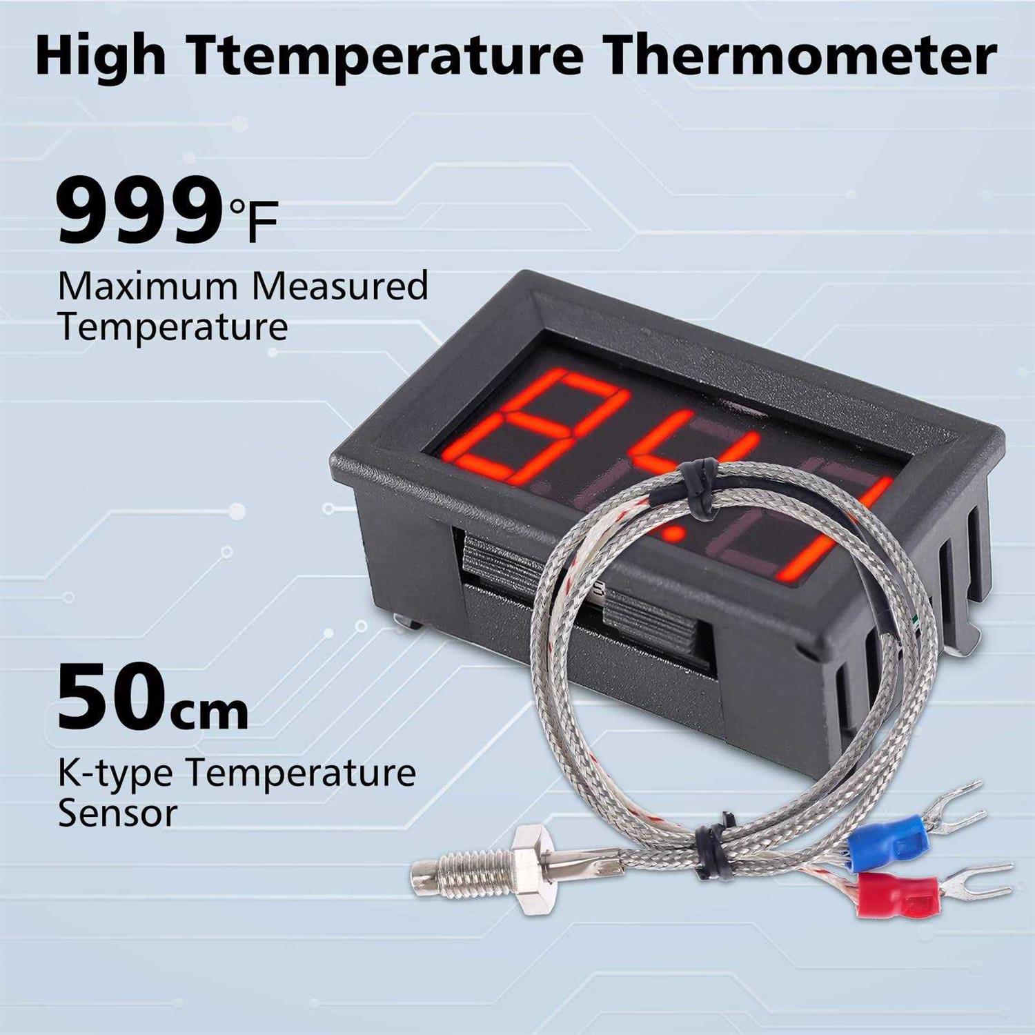 PEMENOL 12V Red Fahrenheit Digital Temperature Meter -76F~999F LED Display with Industrial Grade 0.5m K-Type Thermocouple Temperature Sensor M6