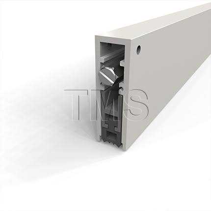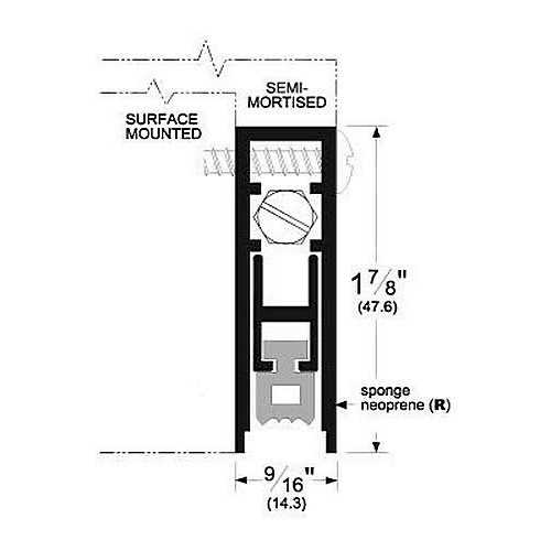 When the plunger contacts the jamb, the drop bar seal actuates from the hinge side first allowing multiple compression points. The plunger requires low undefinedFeatherTouchundefined closing force to actuate the drop bar seal. The “L” at the end of all product numbers stands for Low closing force. End plates are provided for all mounting applications. Available in sizes ranging from 18″ to 72 ” All Pemko automatic door bottoms are provided net length., Stock length automatic door bottoms can be trimmed as much as 2″.