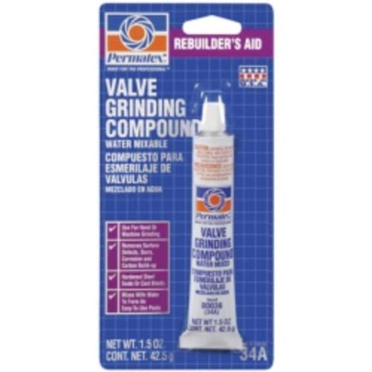 Aids valve grinding and seating operations to remove burrs, surface defects, carbon, gum and corrosion. Can be used for lapping and grinding chromium. Mixes with water to form a paste. Suggested applications: seat valves, sharpen reel type lawn mowers. Can be used for lapping and grinding chromium. Permatex Valve Grinding Compound is an odorless grey paste containing selected abrasive grits dispersed in a waterbased, non-corrosive binder composed of gelling agents, lubricants, preservatives and ethylene glycol. It is a multipurpose compound designed to aid valve grinding operations on automotive, industrial and marine engines. Can be used for lapping and grinding chromium-cobalt, hard-faced seats and discs. Removes burrs, surface defects, gums, carbon deposits and corrosion. Mixes with water to form easy-to-use paste. Combines special grits of various sizes that become finer as the compound is worked. Provides a fine, smooth finish.