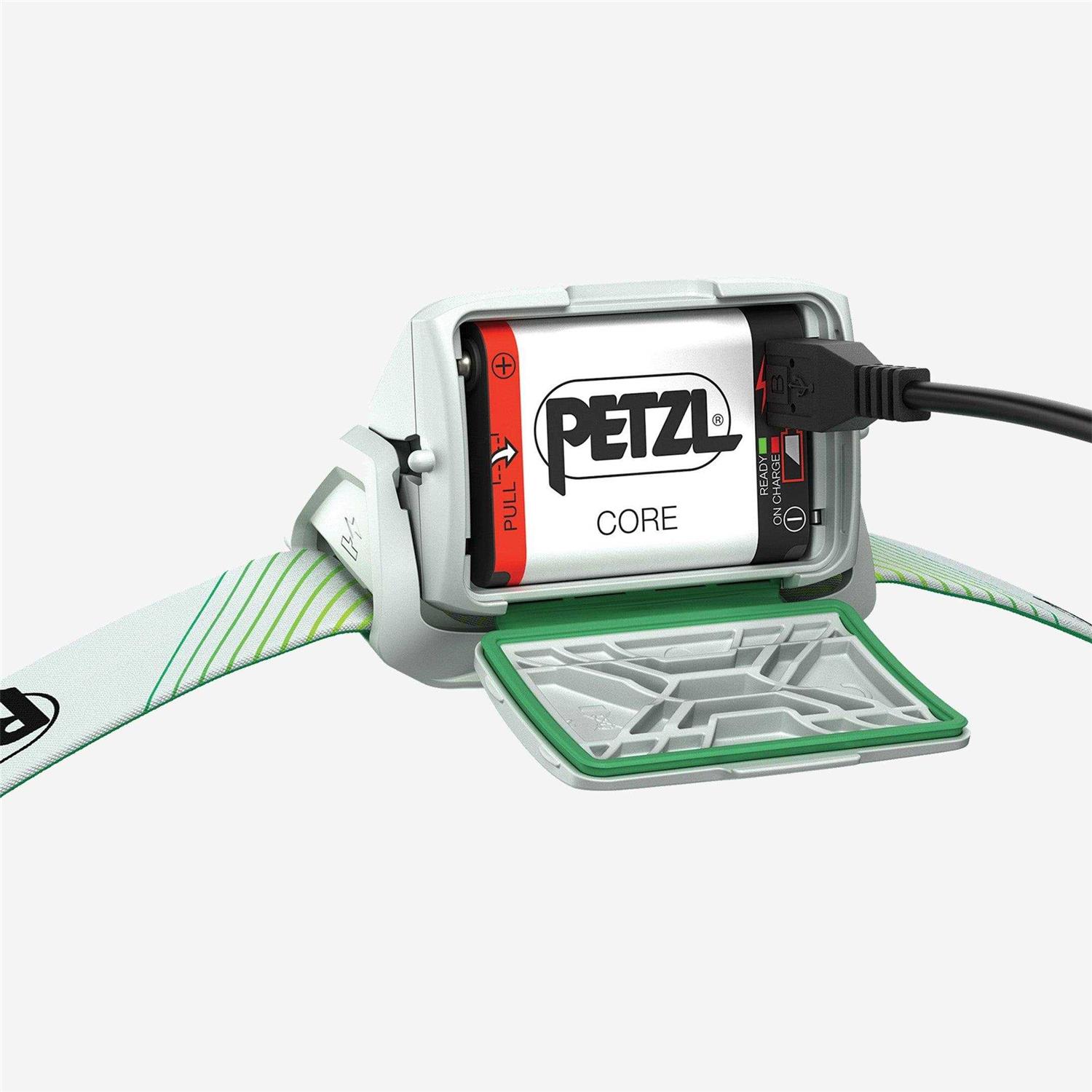 Actik Core is the ideal headlamp for dynamic outdoor sports. Provides powerful and comfortable light for running, hiking or climbing. The phosphorescent reflector makes it easy to find in the dark, and the red light is handy for group lighting at night. It comes with a Core rechargeable battery and thanks to the Hybrid concept technology, it also works on three AAA batteries. The headlamp has a wide, uniform cone of light for comfortable close-up lighting and a combined cone (wide and focused) that allows you to see up close and at a greater distance when moving. Option of three intensities of clear light (max. lighting time, standard and max. power). Continuous red light to maintain night vision without dazzling people around you and flashing mode to signal your location, especially in emergency situations. The Actik Core headlamp has a single button for quick and easy selection of light intensity and color, and the tilting of the lamp body enables orientation in the desired direction. The battery status indicator shows the charge level every time you turn it on or off and charge it (via a micro USB type B port). You will also appreciate the Lock switch function, which prevents accidental switching on of the flashlight during transport or storage. It is equipped with a removable, washable headband that is symmetrical for easy adjustment and a storage case that allows the torch to be converted into a lamp. It is compatible with Helmet adapt and Bike adapt 2 adapters, so you can attach the lamp to different types of helmets or bicycles (This lamp is not certified for road use).