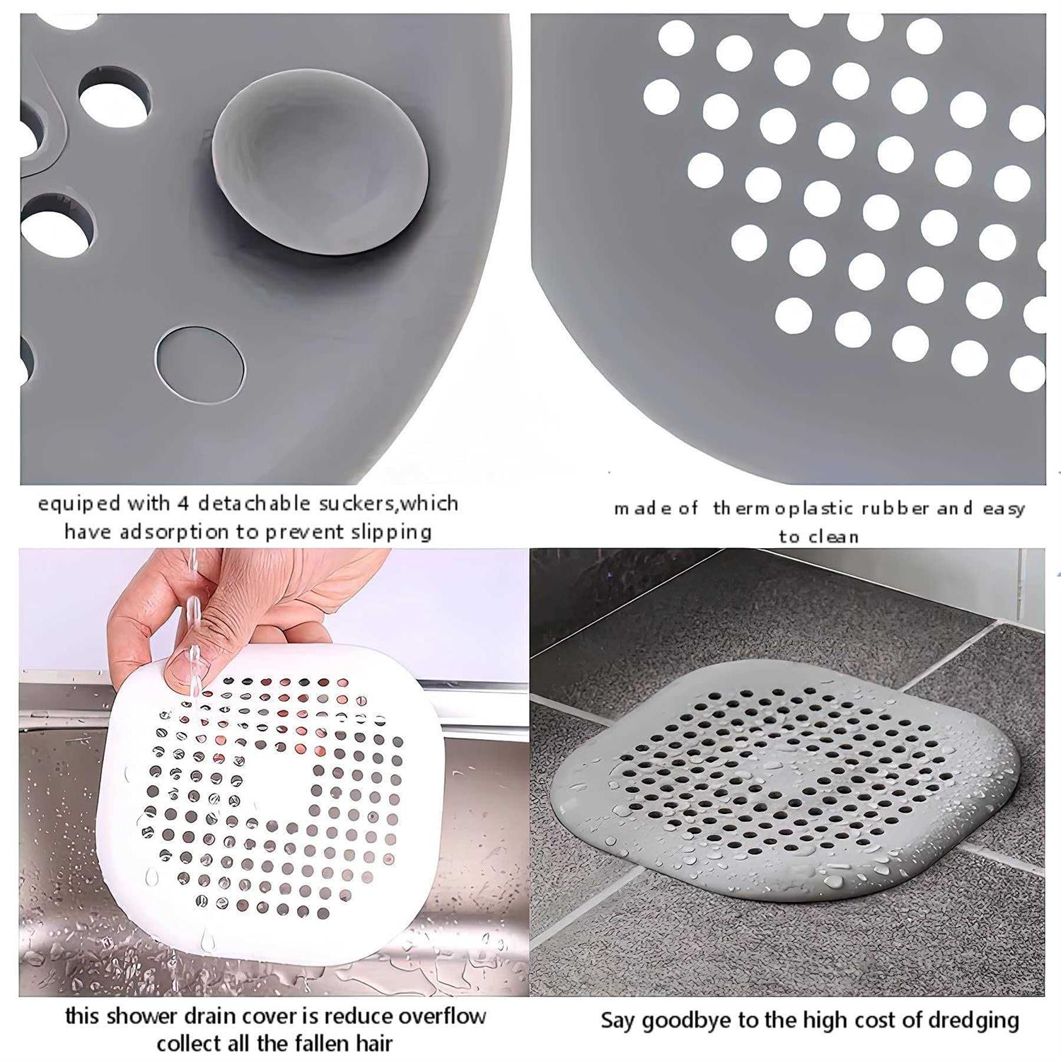Specification:Material: TPR Thermoplastic Size: 5.4in*5.4in Weight:2.53 ounces Features:1. Our shower drain hair catcher has added 4 suction cups on the bottom of the flat silicone plug that prevent any sliding or slipping of the on a wet floor. 2. Practical and easy to use, this shower drain cover is reduce overflow collect all the fallen hair. 3. The drainer plug for kitchen and bathroom with confident filtration, fine pores, let the hair stay here. Say goodbye to the high cost of dredging. 4. Our shower drain hair trap is suitable for drain less than 5 x 5 inches. Make sure the strainer stopper is suitable for your drain before using it.Package Includes:2xDreamark shower hair drain catcher(white and gray).