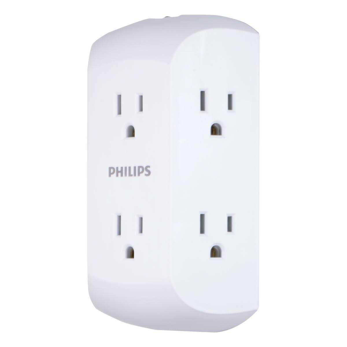 Get six times the power with the PHILIPS 6 outlet wall tap with resettable circuit breaker. Featuring six grounded AC outlets, The plug-in transforms your regular outlet into an efficient, powerful charging station. The space-saving side access design of the wall tap provides easy access to the adapter spaced outlets and is ideal for any room in your home, regardless of size or setup. The wall tap also includes an integrated circuit breaker for overload protection. Use the wall tap as part of your permanent home or office setup or, for holidays and special occasions, create a centralized location for powering a room’s worth of electronic lights and decorations. Prioritize all your devices at once with the PHILIPS 6 ac wall tap with reset switch. Compatible with Smart Control Systems. 0.48lb, compatible with smart control systems. Compatible with Smart Control Systems.