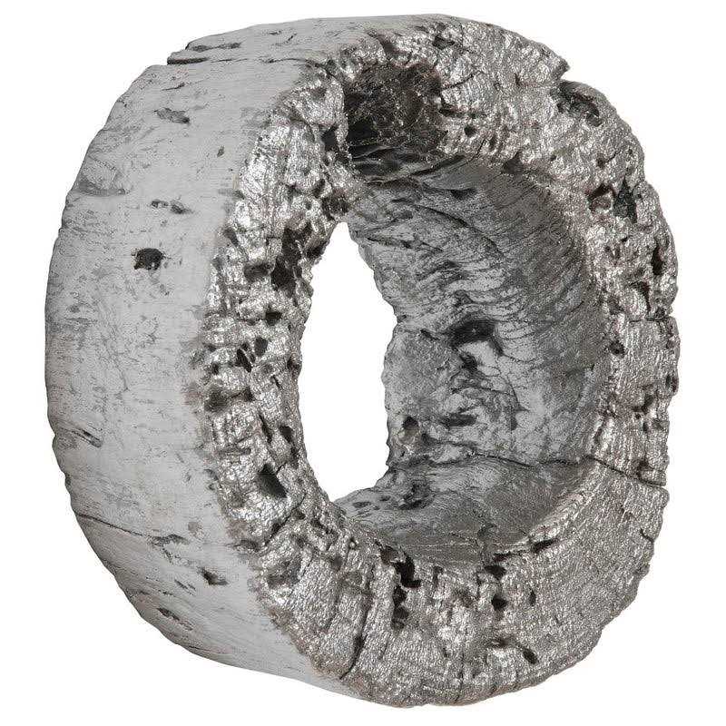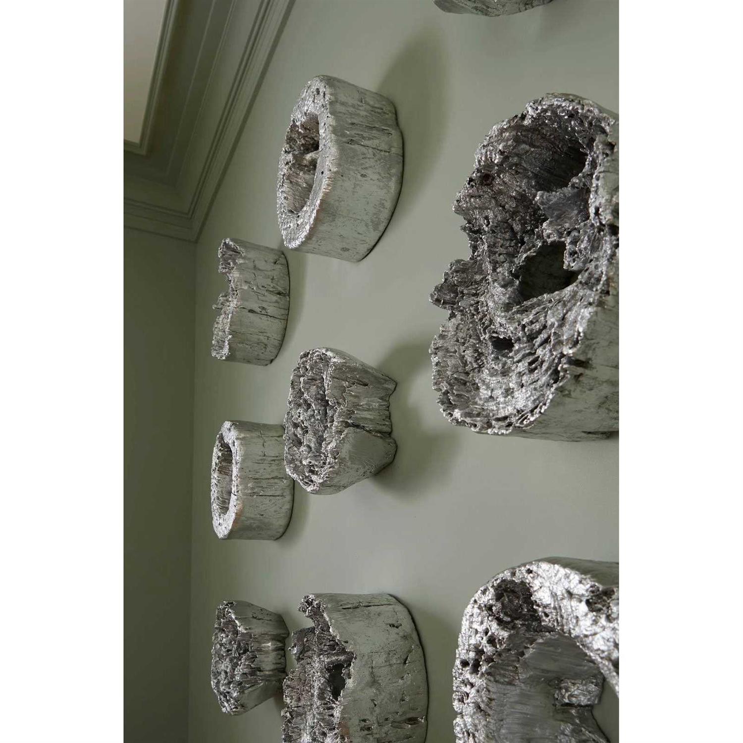 Bring an immediate sense of seriousness to a room with the Cast Eroded Wood Circle Wall Tile. Though it is made of composite, it imitates a relic so convincingly, it could have been pulled from the smoky ruins of a bygone volcano. The mix of silver leaf and black finishes help amplify this ruse that reflects the ethos that Phillips Collection personifies: modern organic. Do not use cleaning materials with strong chemicals.