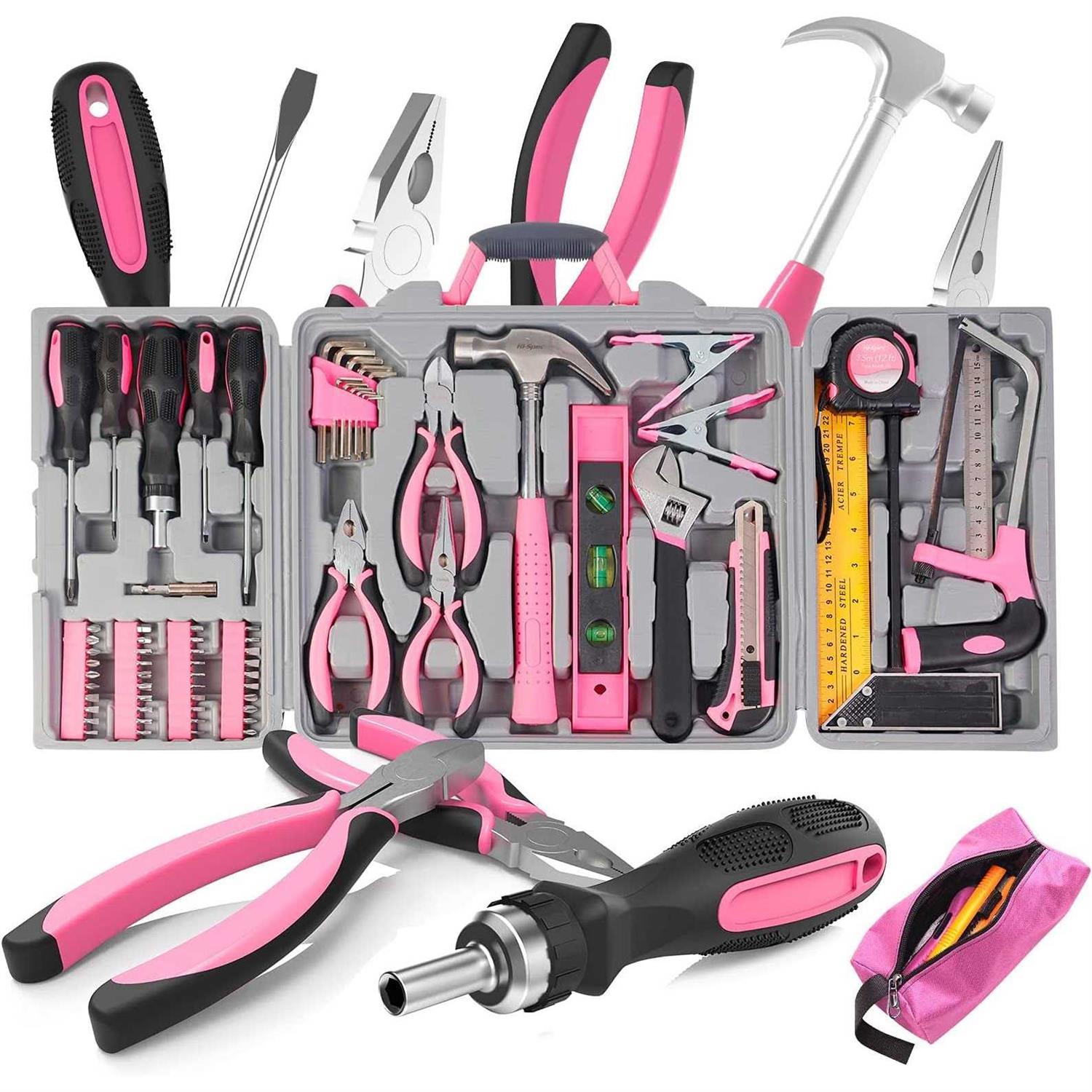 - High-value Pink Tool Set This pink tool set includes most of the home repair tools, which is both beautiful and practical. You can use these pink tool