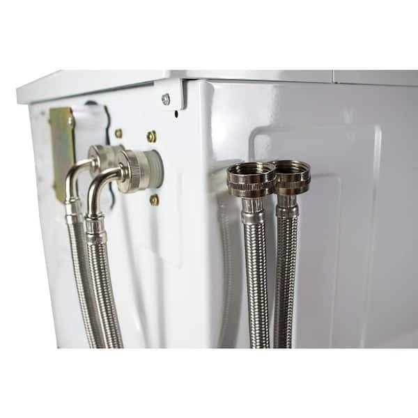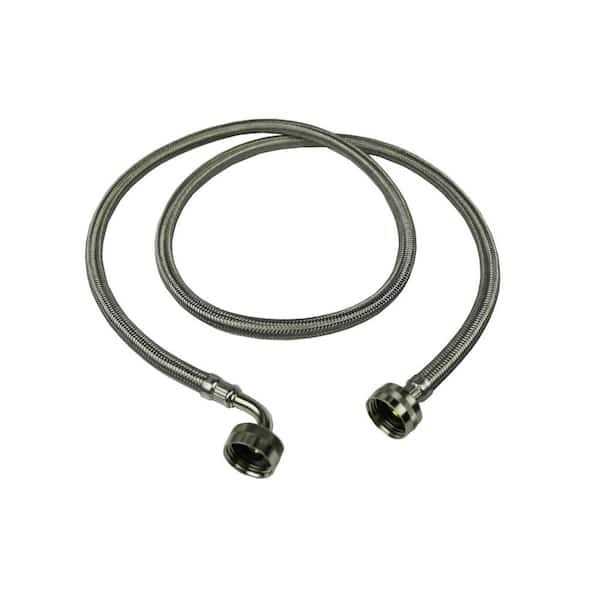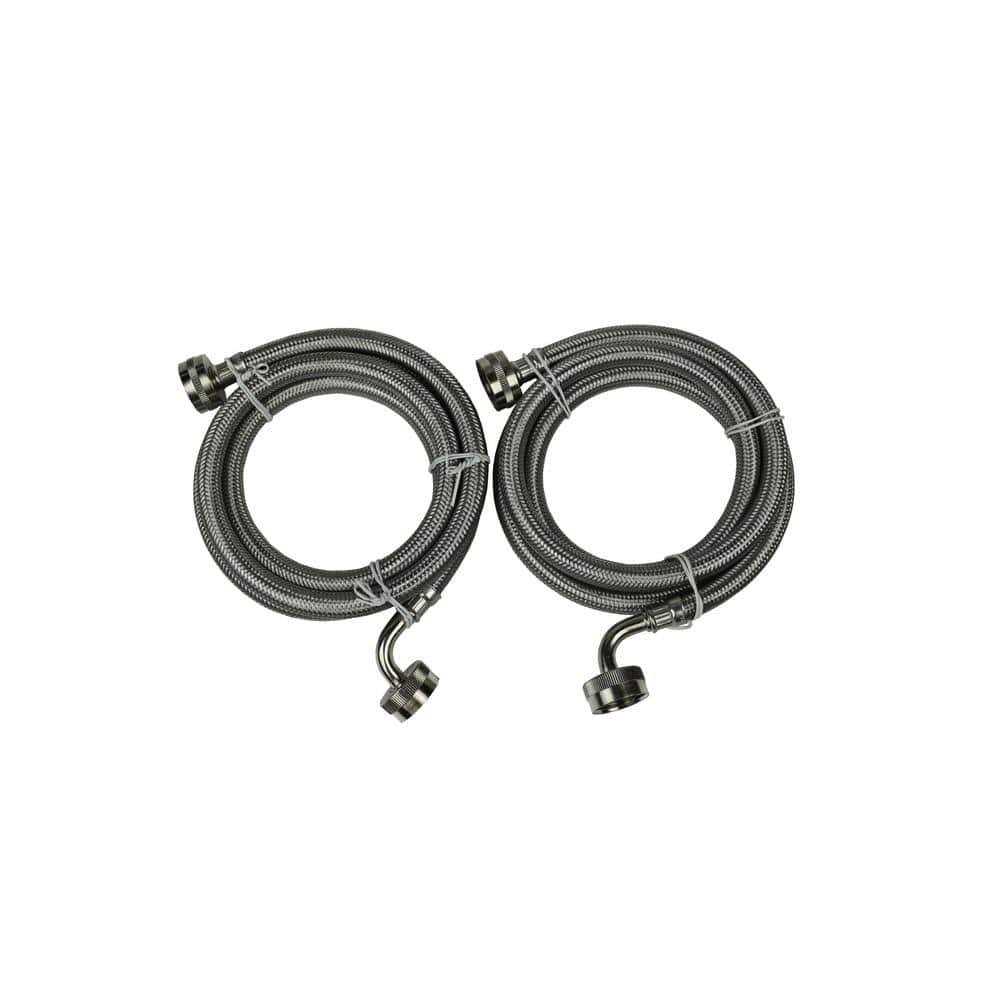 Our flexible, braided 5 ft. long hose is designed to withstand high burst pressure from water lines attached to compact washer units. This set comes with two steel hoses. This set of two, five-foot hoses highlights a durable stainless steel construction. Nuts on both ends ensure a solid connection on the inlet and outlet ends. These hoses are flexible and braided.