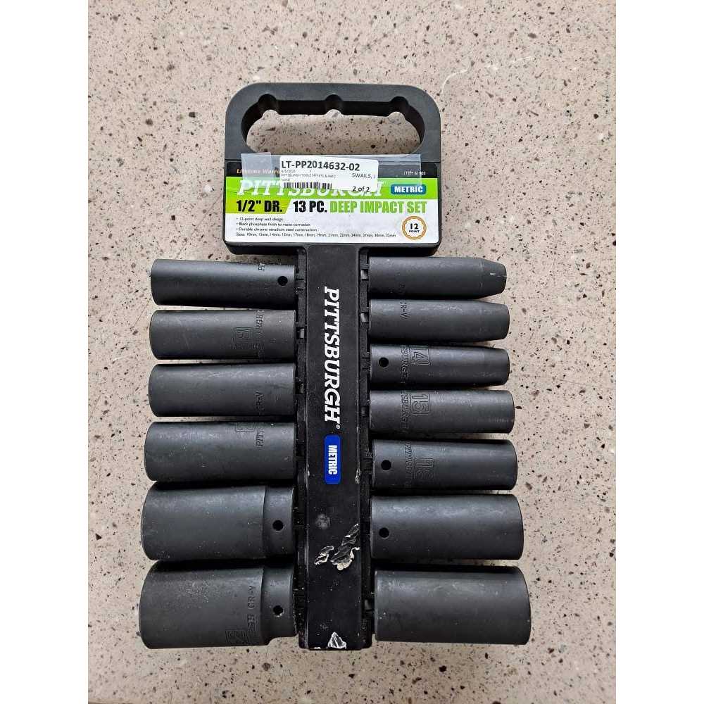 Pittsburgh 1/2 in. Drive Metric Impact Deep Socket Set – 13 Pc. 61903