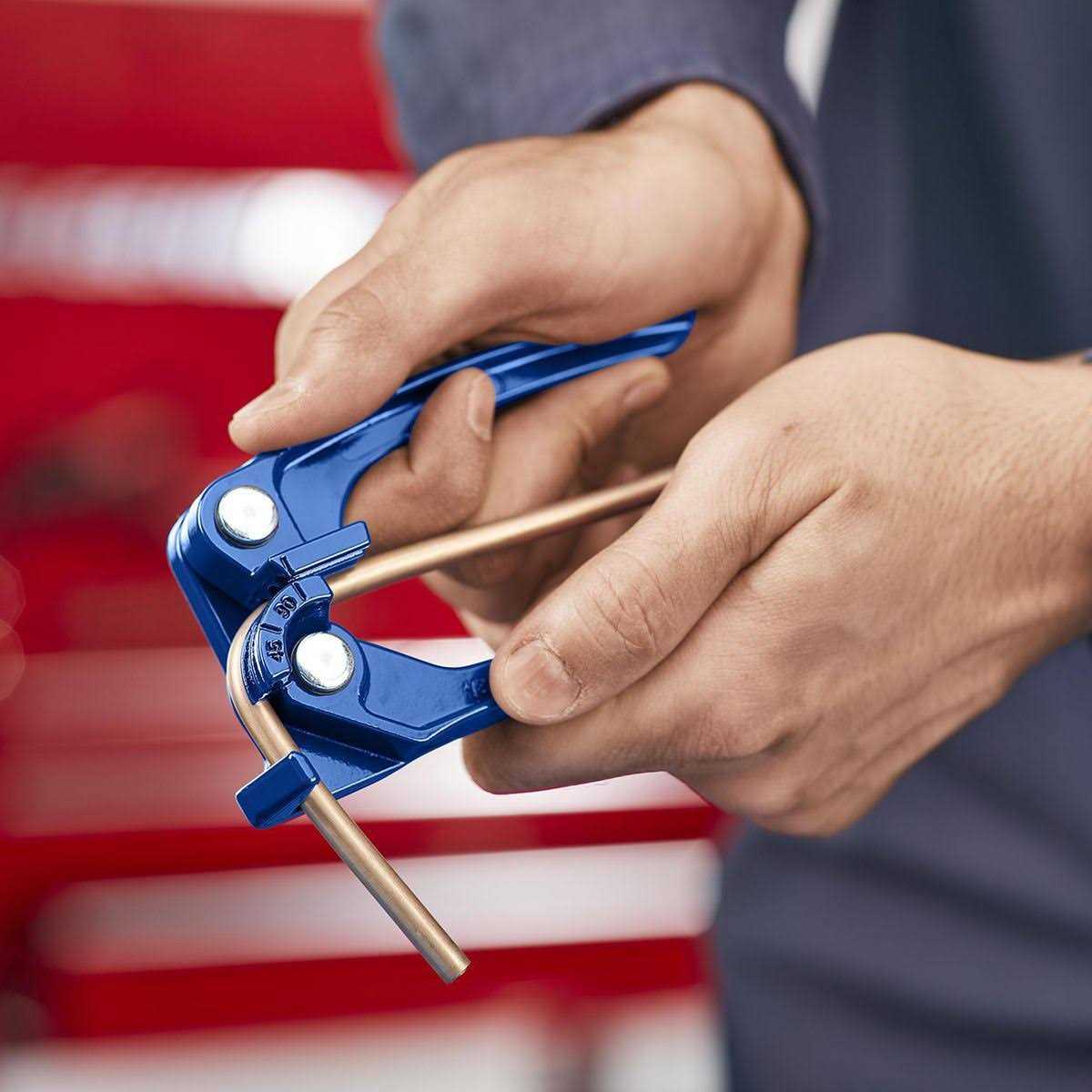 This small tube bender features a specialized design to handle smaller tubing such as automotive fuel lines, air conditioning and refrigeration. The small tube bender allows you to make tight bends without kinking. The compact, lightweight design fits in any toolbox. The bender bends from 0-120° with reference marks at 45° and 90° to provide accurate bends every time.