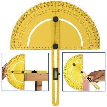 This handy angle finder is ideal for calculating angles in slope construction, such as stairs, roof rafters and window frames. This versatile carpenter’s tool can also be used as a regular level, a T-square or a sliding set square.