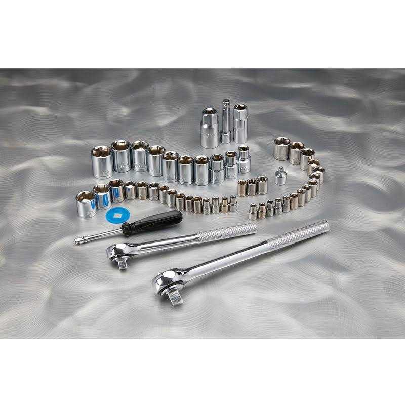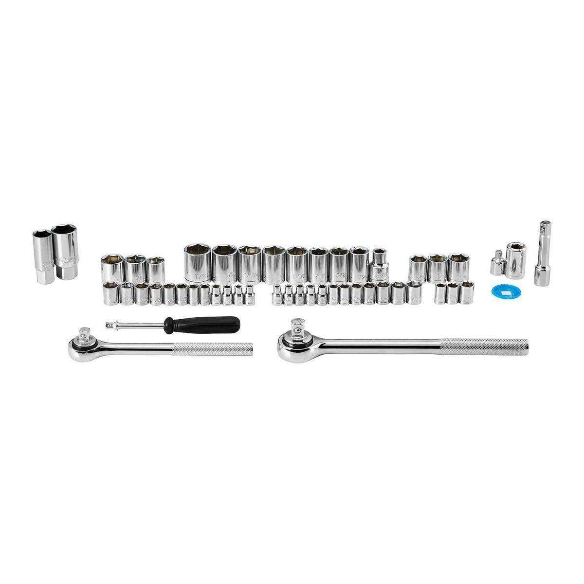 This 51 piece socket set is packed with sockets to accommodate almost any job! Offering a wide range of sizes, this set includes sockets to help you with automotive work, plumbing and more! Features a polished chrome finish along with 3/8 in. and 1/2 in. drive reversible ratchets to put the socket set to work all stored in a custom carrying case to keep the sockets organized!