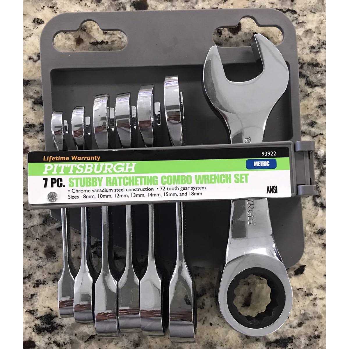 Pittsburgh 7 Piece Stubby Combination Ratcheting Wrench Set 93922