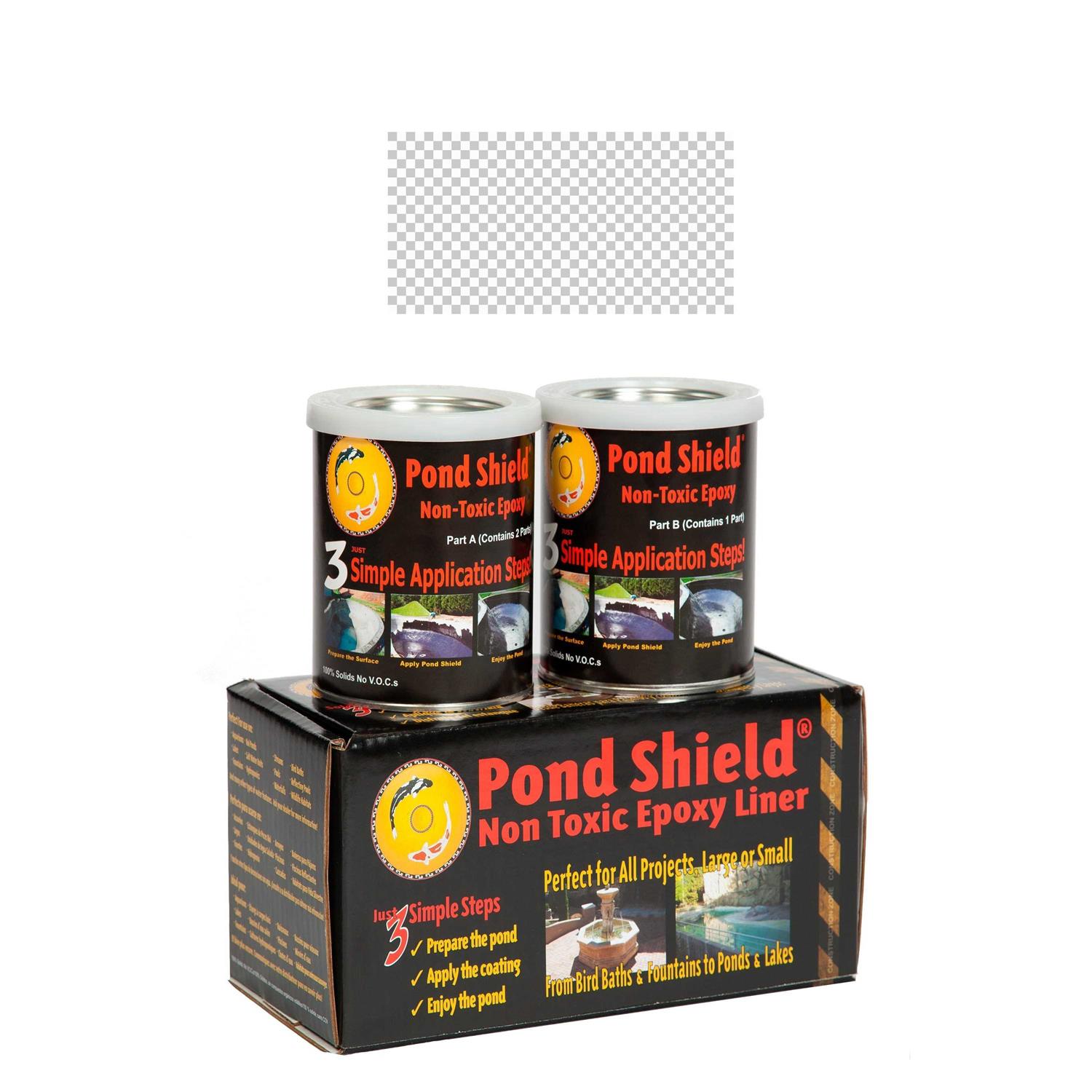 Fountain and water feature replacement partspond shield by pond armor is the finest high performance epoxy pond liner and sealer on the market today. The modified epoxy pond coating and sealer developed by pond armor produces an awe-inspiring finished surface that provides a water proof non-toxic barrier for your aquatic environment. Pond shield is a 100 percent fish and plant safe pond coating. Pond shield was designed by pond armor with the hobbyist in mind. After prepping the surface area pond shield rolls on just like paint with a short nap 1/4 paint roller or can be applied with a brush squeegee or even sprayed on. You can use 2-3 oz per kit of denatured alcohol to thin the product for easier use as it is quite thick out of the can. You simply mix both parts with the alcohol and its ready to apply. Pond armors pond shield works great for koi ponds water gardens fountains and waterfallswe always stock it in clear black tan gray white forest greenblueeach pond shield kit is 1.5 Quarts and can cover up to 60 square feet. Thats 60 square feet in just one coat for a total of 10 mils in thickness. Unlike the color versions of pond shield clear pond shield is void of pigments which means each kit is applied in several thin coats eventually being brought up to 10 mils thickness no primers or sealants needed. It can be applied to most surfaces including fiberglass concrete or cement. It is a flexible epoxy and provides a superior elongation. Simply mix both components together and apply just like paint. Cures to touch within a few hours and is safe for aquatic life. This does not mean your epoxy has gone bad. It is just cold. To remedy this tightly replace the lid on your product and place each container in a bucket of hot tap water boiling the water is not necessary. Your pond shi.