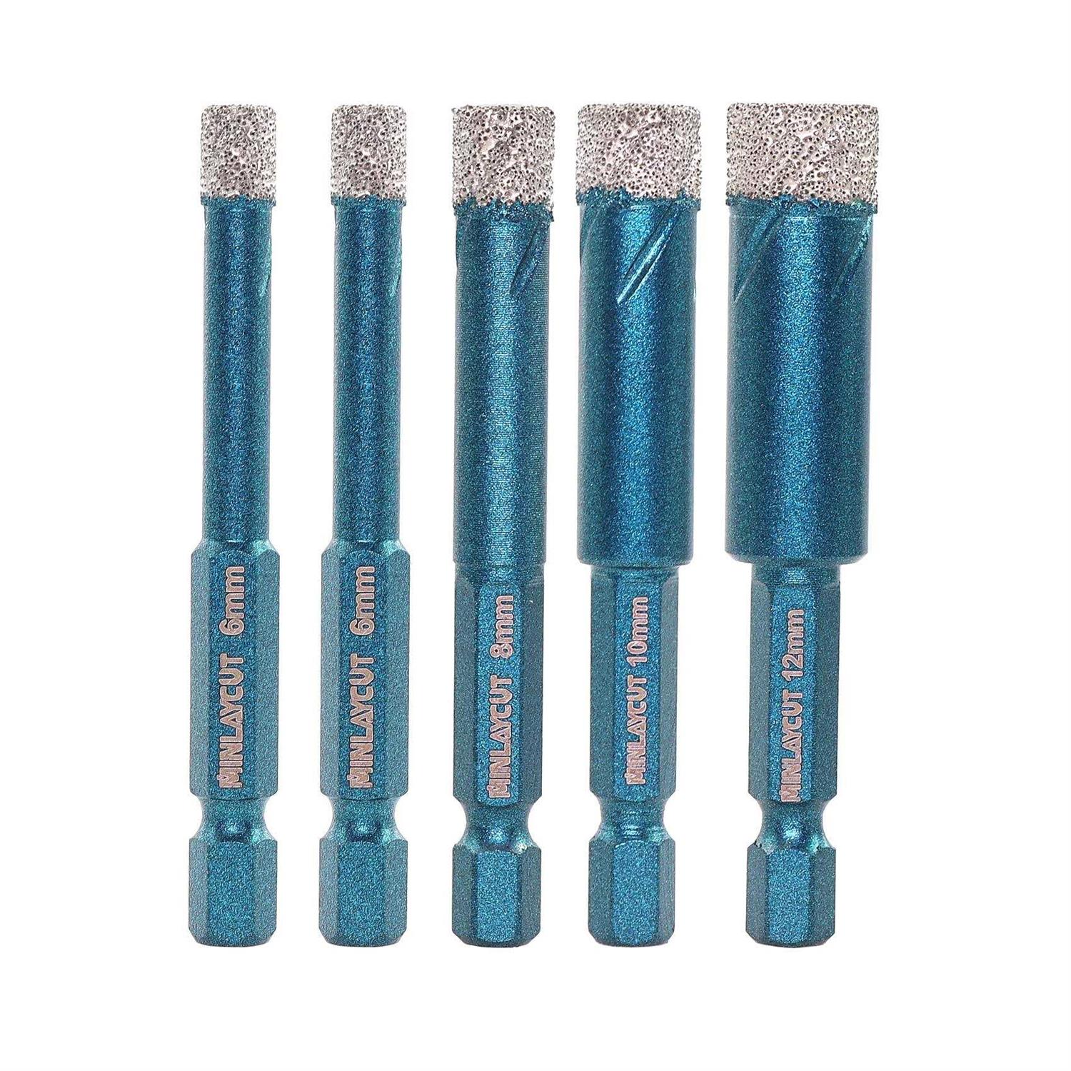 Porcelain Tile Drill Bits Set MINLAYCUT 6/6/8/10/12mm Diamond Hole Saw Kit Quick-fit Hex Shank for Ceramic Tile Marble Porcelain