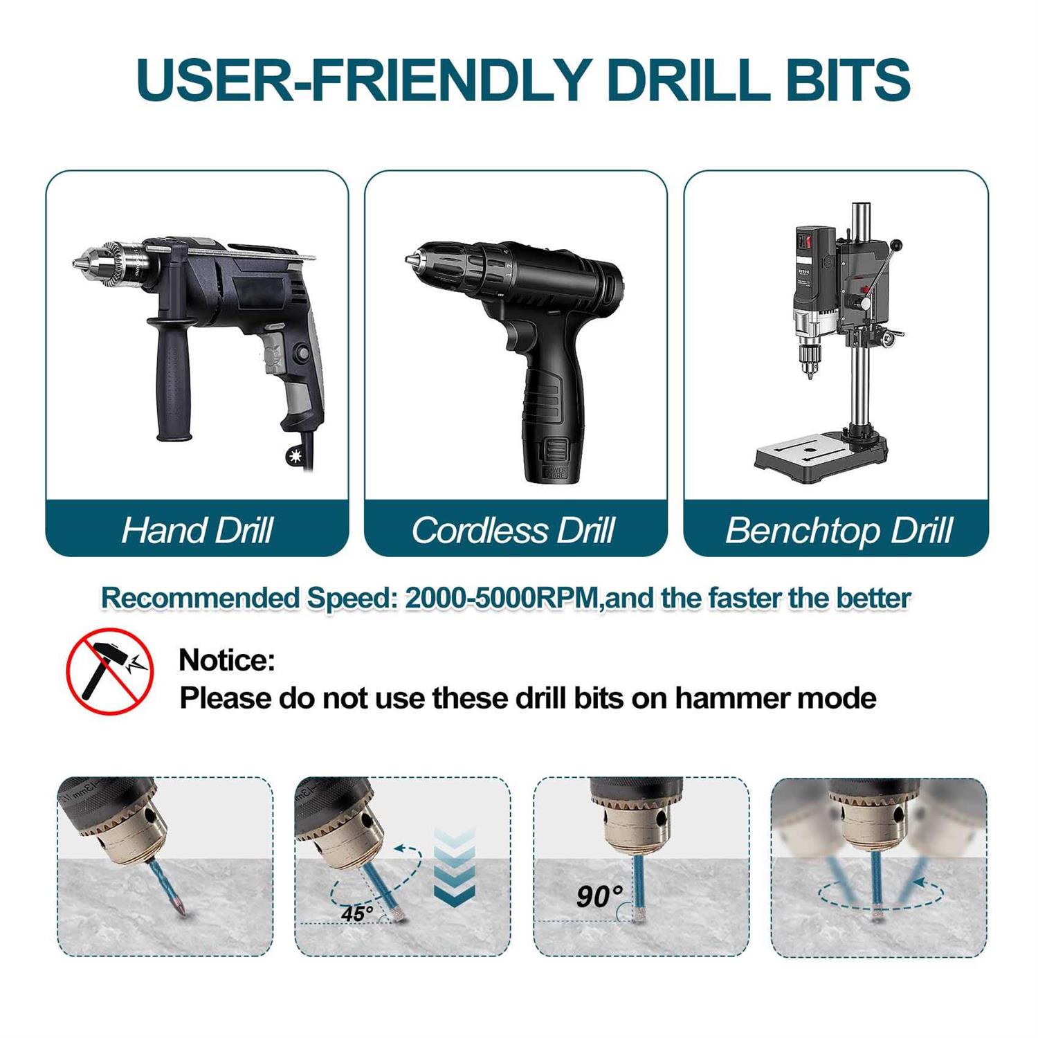 √The quick connecting handle design , with the opposite side handle diameter of 6.35MM.It is suitable for the quick installation of electric hand drill. √The hole drill contains cooling wax, and there is no water for dry drilling. When drilling, the wax will melt to lubricate and cool the drilling surface; √High quality diamond is selected and processed by vacuum brazing technology, so that the exposed diamond is higher, sharper and longer service life; √8mm diamond height with spiral groove at the top, it is helpful to improve the drilling efficiency.Diamond is fine and closely arranged to reduce the generation of debris and heat, and the drilling finish effect is good; √Machine –Suitable for any hand drill,benchtop Drill, When use Angle Grinder,please install angle grinder drill chuck. Tips –Recommended Speed: 2000-5000RPM, and the faster the better. Do not use on hammer mode. tile drill bits 1/4 marble drill bits 1/4 inch porcelain drill bits granite masonry core drill drill bits