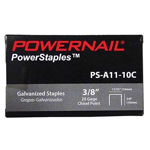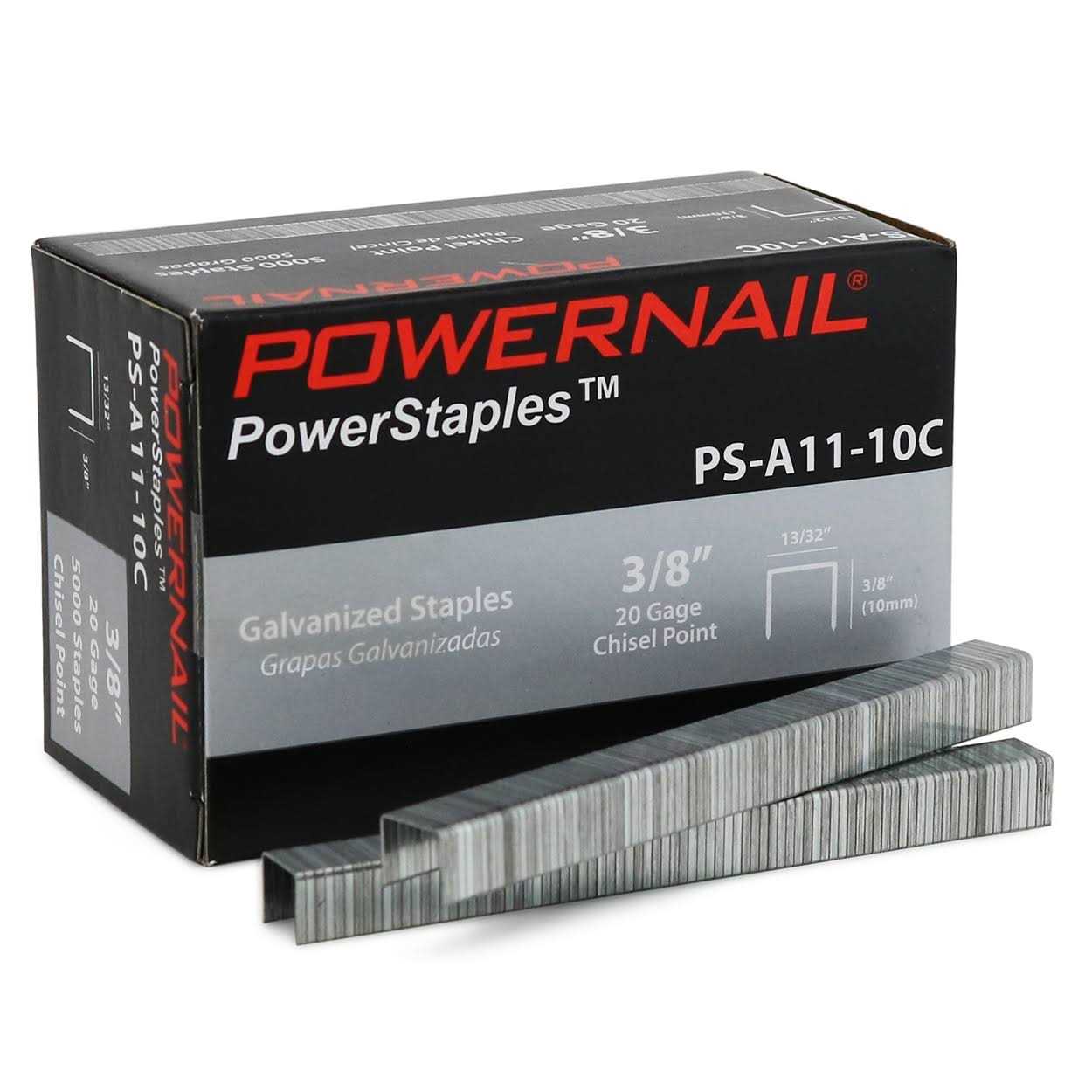 POWERNAILs A11 Series carpet staples provide superior holding power for general fastening applications. Whether you are installing roofing felt, carpet pad, house wrap or even streamers at a wedding, these 20-Gauge divergent point staples get the job done. L with a 13/32 in. crown. A11 Series staples are made of galvanized steel for superior durability. Compatible with numerous different types of hammer staplers, these fasteners are best used in POWERNAILs HTBL11 hammer tacker.