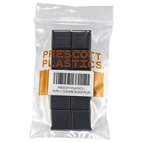 Prescott Plastics 10 Pack: 1 inch Square Plastic Plug, Tubing End Cap, Durable Chair Glide, Black