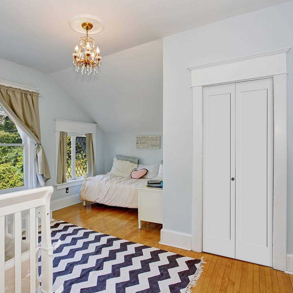 Elevate your interior space with this bi-fold door. For convenience, it includes a track and hardware. The shaker style with 90-degree panel edges and designs add style. Handcrafted for lasting use, it features a solid wood core and engineered stiles and rails that resist shrinking, splitting or swelling.