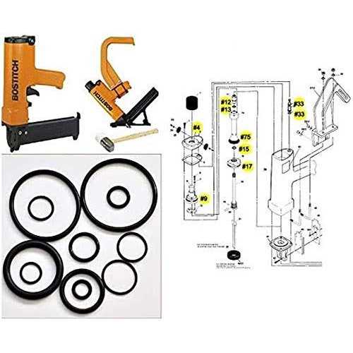 Bostitch MIII O-ring Kit Includes: (1) – 86458 O-ring,(1) – 850144 O-ring,(1) – 87251 O-ring,(1) – 86314 O-ring,(1) – 88999 O-ring,(1) – 850143 O-ring,(2) – 88998 O-ring (1) – 88445 O-ring,(1) – 86460 O-ring,(1) – 850626 O-ring,(1) – 121799 O-ring *All manufacturer’s names, part numbers and descriptions are used for reference purposes only. O-rings and Seal Kits are assembled with high quality, aftermarket parts. Color : Black assembled with high quality, aftermarket parts. 1 – 86458 O-ring 1 – 850144 O-ring 1 – 87251 O-ring 1 – 86314 O-ring 1 – 88999 O-ring 1 – 850143 O-ring 2 – 88998 O-ring 1 – 88445 O-ring 1 – 86460 O-ring 1 – 850626 O-ring 1 – 121799 O-ring *All manufacturer’s names, part numbers and descriptions are used for reference purposes only. O-rings and Seal Kits are assembled with high quality, aftermarket parts.