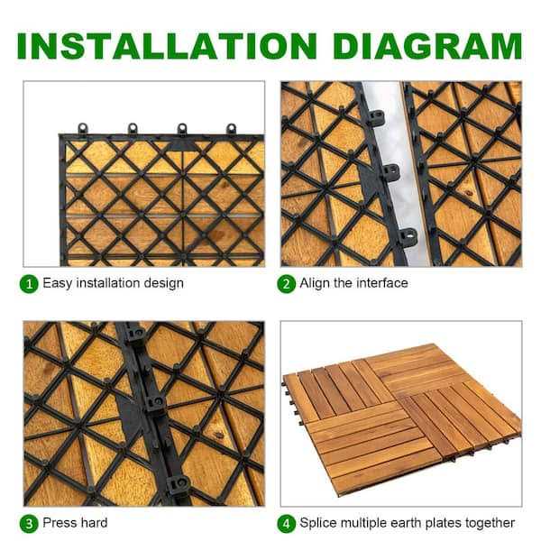 Pro Space 12 in. x 12 in. Acacia Wood Interlocking Flooring Deck Tile Brown
