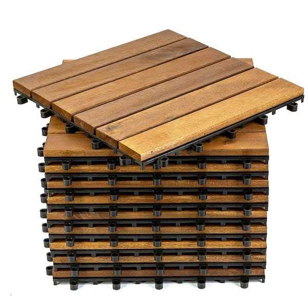 Pro Space 12 in. x 12 in. Acacia Wood Interlocking Flooring Deck Tile Brown 6 Slats (10-Pack)