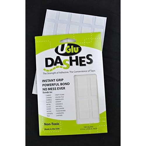 Uglu is a double-coated non toxic rubber tape with an easy to remove white paper release liner. Uglu provides an instant bond with no cure or dry time yet will not stick to your fingers. Avoid using uglu in direct and prolonged sunlight as UV rays can decrease the bond. Maximum holding weight is up to 2 lbs. Uglu should not be used on wallpaper or newly painted surfaces. Allow new paint to dry/cure for up to 60 days. Uglu should not be used to mount objects above beds or sofas.