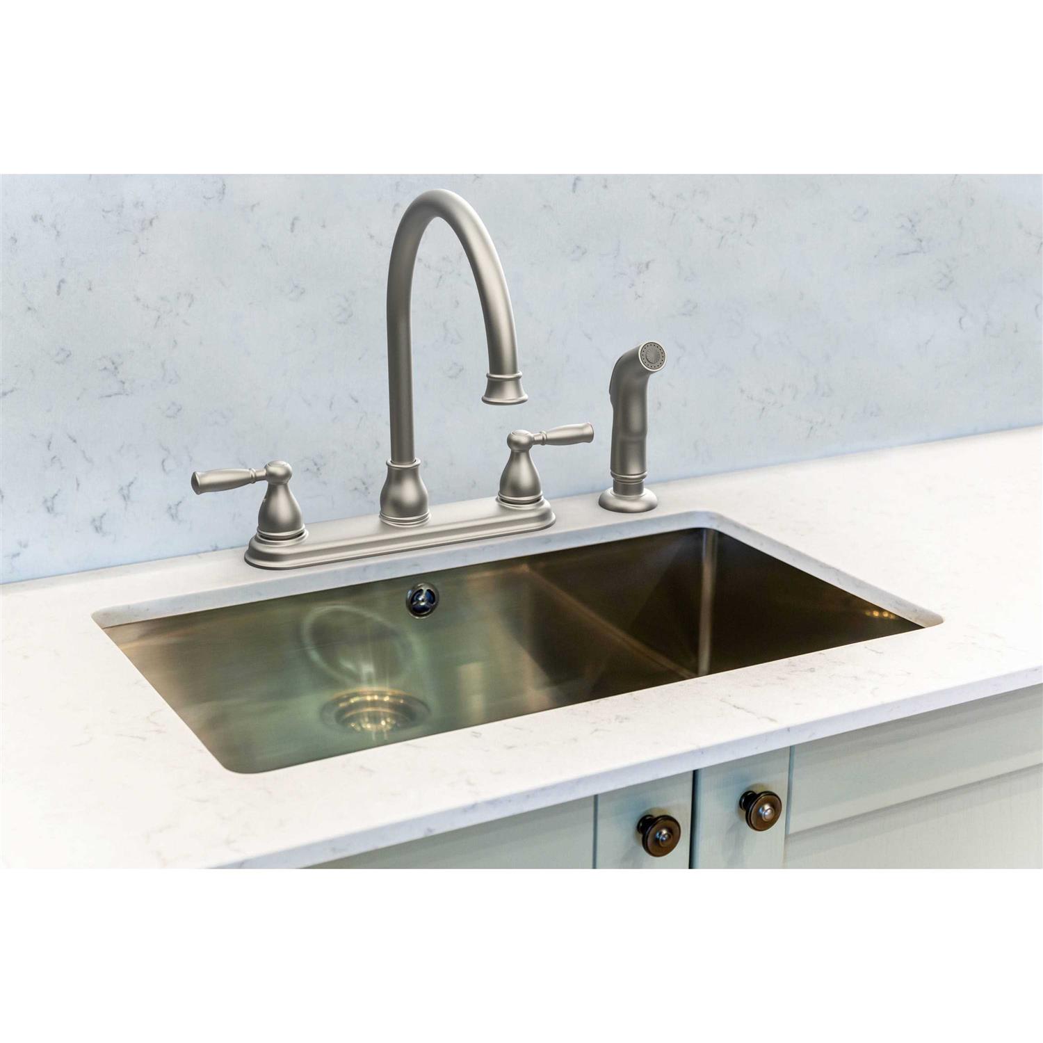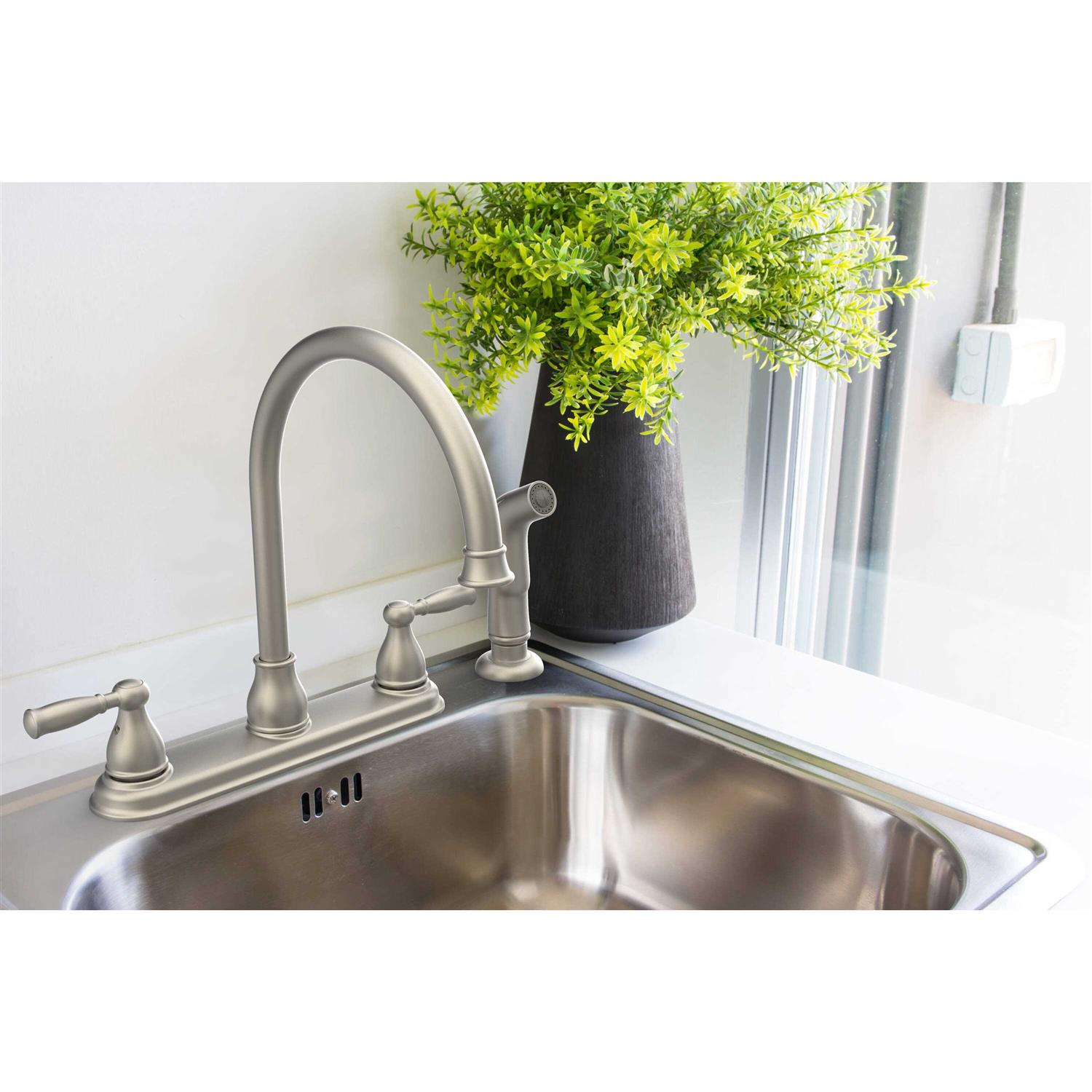 Project Source Brice Stainless Steel 2-Handle Deck-Mount High-Arc Handle Kitchen Faucet with Deck Plate 67129W-100802
