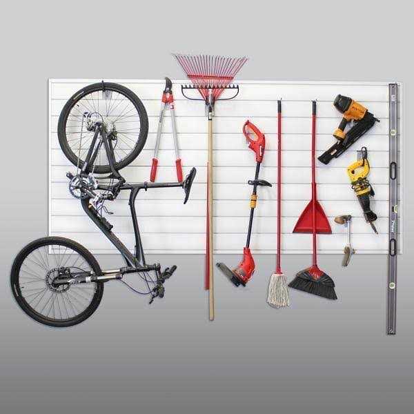 A Proslat wall solution begins with Proslat’s patented PVC wall panels designed for your garage. Included in this kit 10-inch x 8-inch panels assembled equals 4-inch high by 8-inch wide plus all necessary trims and mounting screws. Made in Canada from 90% recycled PVC Proslat is one of the greenest storage solutions on the market. It is also one of the most versatile as individual panels may be installed as a track in a section or over an entire wall. Installation is simple and the unique hidden screw design gives a professional finish. Built to last Proslat wall panels are up to 25 times more impact resistant than drywall and they hold up to 75 lb. 34 kg per linear ft. Panels are not affected by mould mildew or water so they can be used in damp locations where drywall and wood might absorb the humidity. Please note that hooks shown in pictures are for visual purposes only and sold separately. Includes 10 heavy-duty solid PVC Slatwall panels, made from 90% recycled materials, covers a 48-Inch x 96-inch section when installed, light gray. Holds up to 75 lbs per linear foot when properly installed. Rugged, interlocking panels. All trims are included and designed for an exact fit and color match. Installed directly to studs or over drywall; Patented hidden-screw design for a professional finished look.