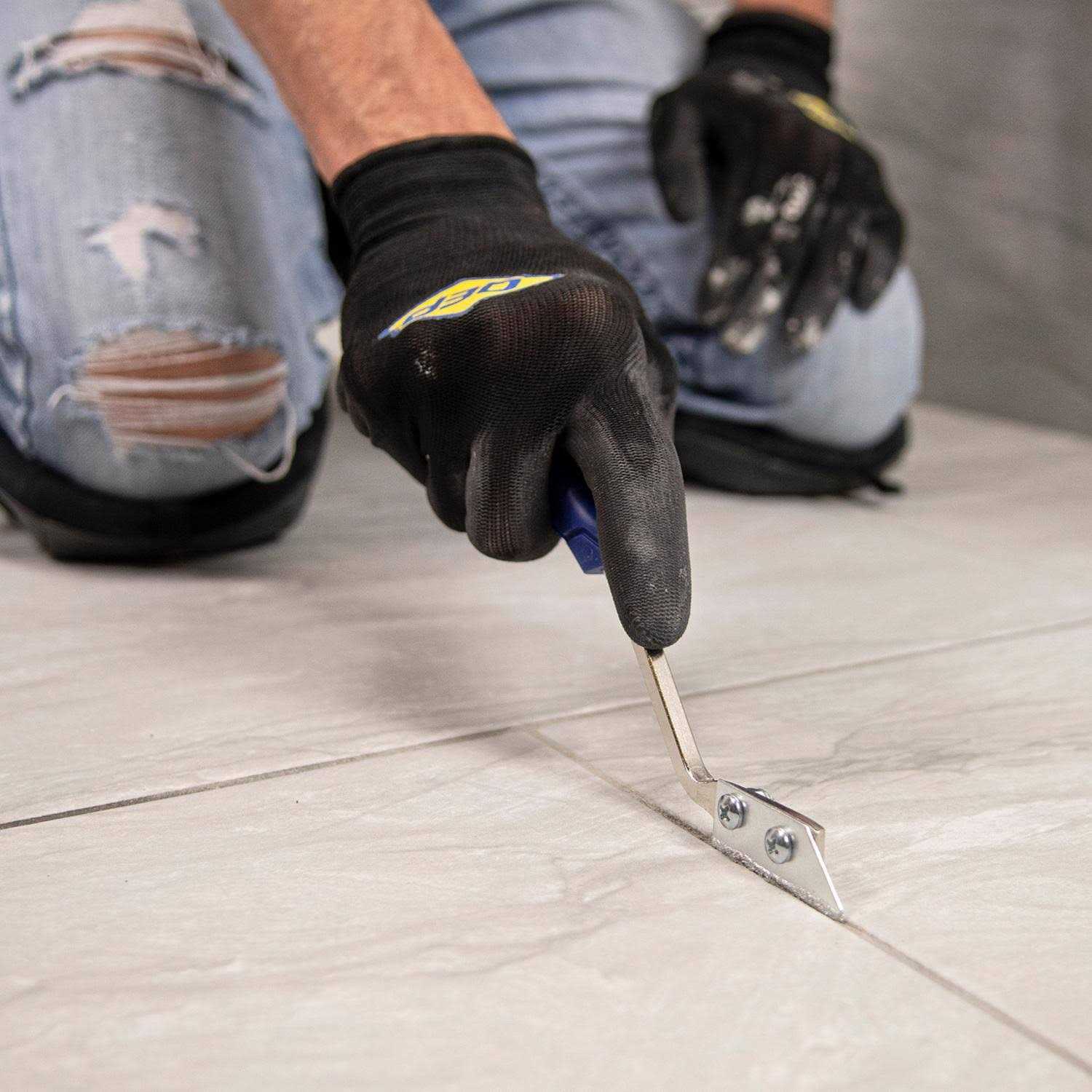 - Use both blades for wide grout lines.