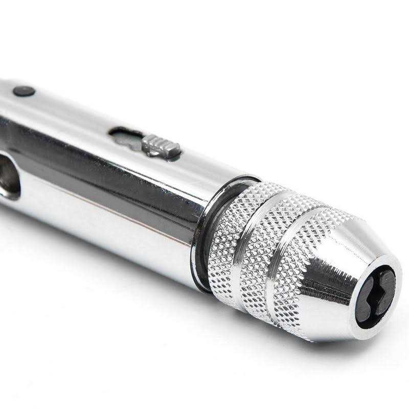 Qisf Adjustable Silver T-Handle Ratchet Tap Holder Wrench with 5pcs M3-m8 3mm-8mm Machine Screw Thread Metric Plug T-shaped Tap