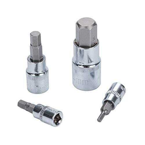 Made from premium material: drop-forged, heat-treated S2 Alloy Steel bits and CrV sockets, guarantee excellent durability. Corrosion-Resistant: fully polished, Chrome plated mirror finish sockets and Zinc Phosphate bits treatment. Ideal to use with manual torque tools, our Allen/Hex bit set includes all the essential sizes to work on bikes, automobiles, appliances, lawn equipment, machinery, and any other jobs requiring Allen/Hex bits.