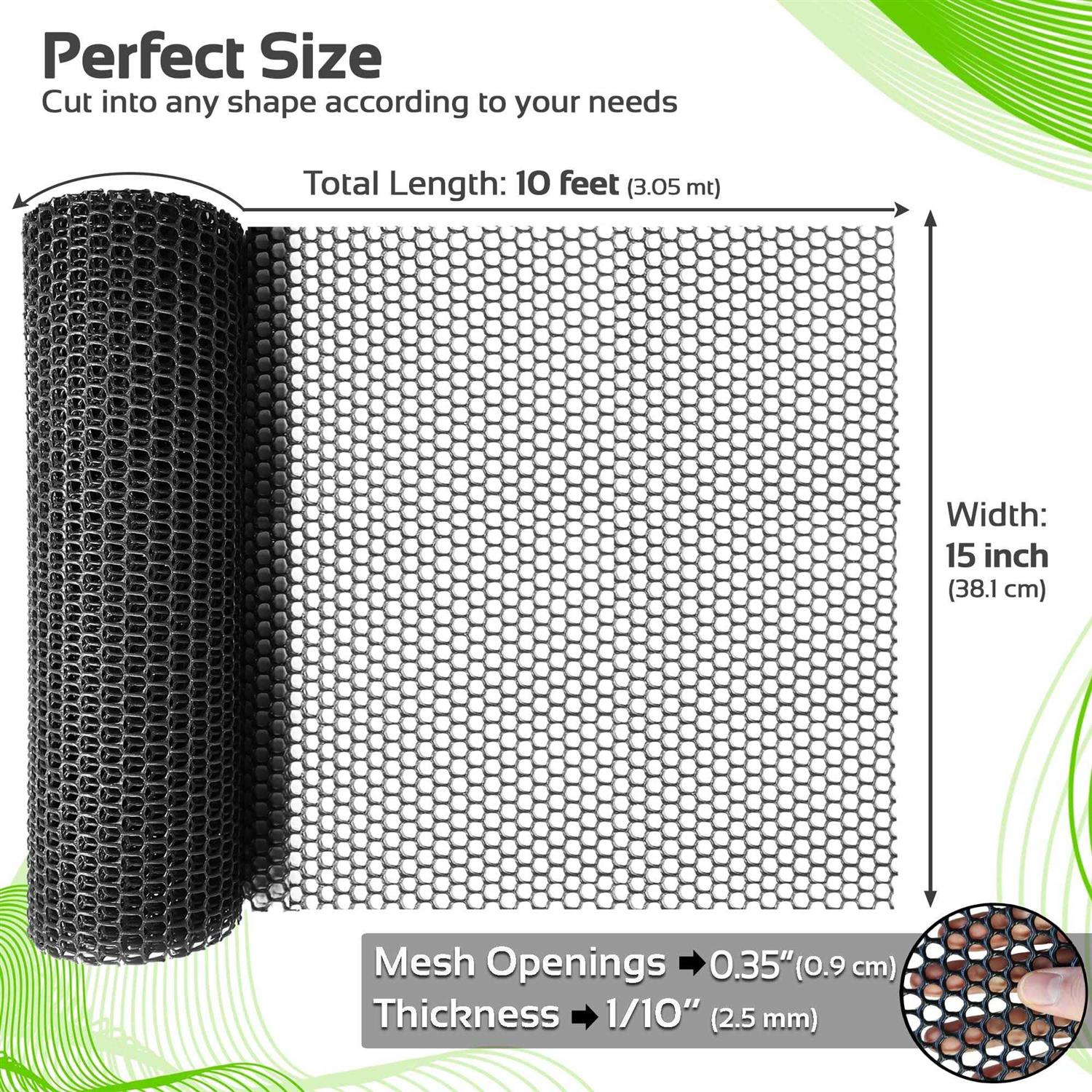 QueenBird Upgraded Plastic Chicken Wire Fence Mesh – 15.7in x 10ft- Black/Green/White Colors – Hexagonal Fencing for Gardening – Poultry Netting,