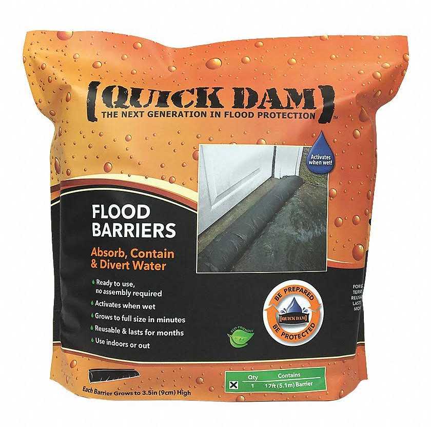 Water Activated Flood Barriers, Rated #1 in Flood Control Grows to 3.5in high in minutes, just get them wet Long, flexible design creates all sorts of shapes. Contains a super absorbent powder that swells and gels water Use to control, contain & divert flood water Ready to use, no sand or labor needed; Compact & Lightweight, stores away until needed; Use to protect doorways, garages, leaking hot water tanks, erosion control & more Protect your home or property in times of flooding with Quick Dam Flood Barriers. Quick Dams expand and activate on contact with water. Just lay them in place and let the water do the rest. Absorb contain and divert problem water away from your home and property, before it becomes a problem. Keep some on hand for emergency situations. Use around doorways, garages, leaking tanks, construction projects, anywhere water is a problem. Protect your home or property in times of flooding with Quick Dam Flood Barriers. Quick Dams expand and activate on contact with water. Just lay them in place and let the water do the rest. Absorb contain and divert problem water away from your home and property, before it becomes a problem. Keep some on hand for emergency situations. Use around doorways, garages, leaking tanks, construction projects, anywhere water is a problem.