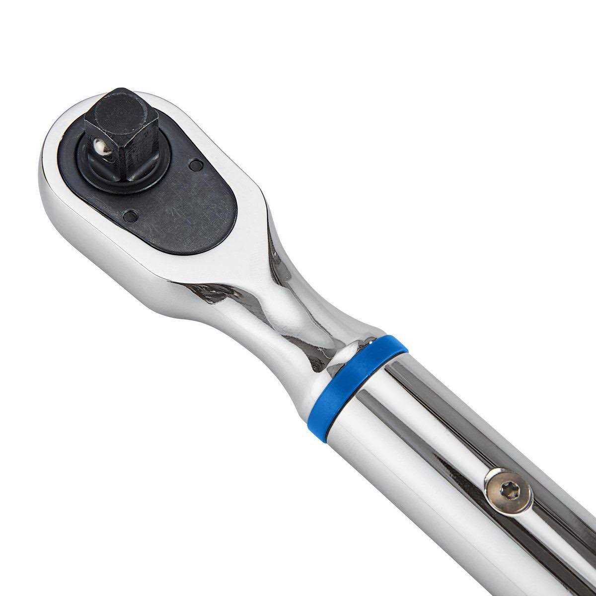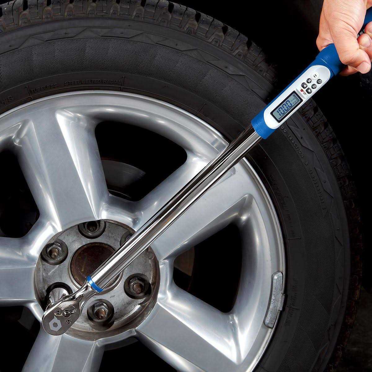 The QUINN 1/2 in. digital torque wrench has a 72 tooth ratchet mechanism with a 5° arc swing that makes it easy to work in tight spaces. This 12.5-250 ft. lb. digital torque wrench offers speed, accuracy and an easy-to-read LCD display. LED lights and an audible beep indicate when the desired torque value or angle is reached. Guaranteed accurate within +/- 3% (clockwise) , this torque wrench can store up to 9 preset torque ratings. Switch easily between torque and angle modes for use with torque-to-yield fasteners.