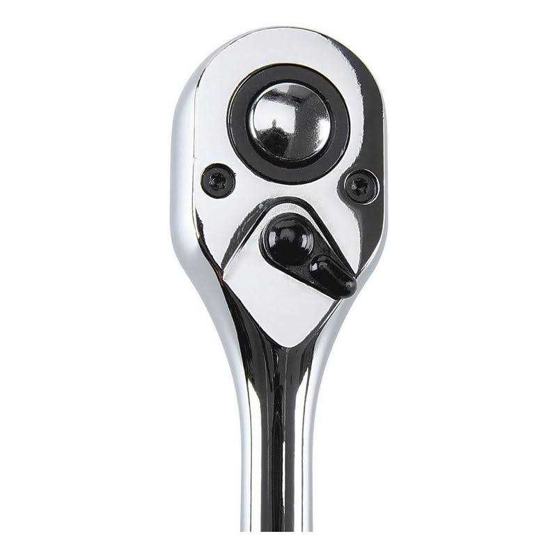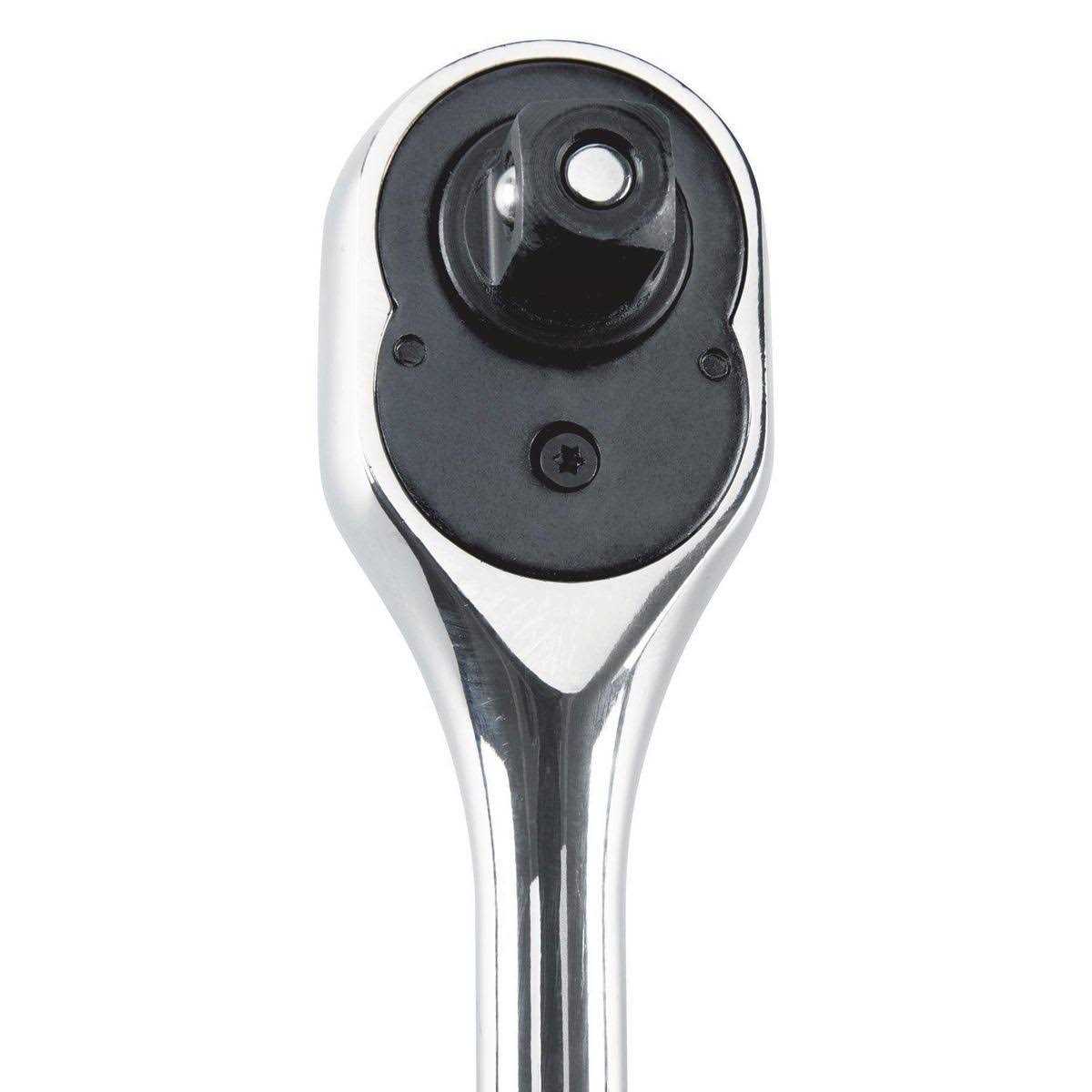 This high visibility 1/2 in. socket set features easy-to-read markings so you spend less time looking for the right socket and more on the task at hand. The rugged chrome vanadium SAE and metric set includes a quick-release ratchet with reversible 72-tooth gearing and a cushion grip to reduce hand fatigue. Triple chrome plating helps fight rust and corrosion.