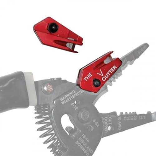 Rack-A-Tiers 47010 V-Cutter Electrician’s Add-On Cable Stripper One of the smartest inventions to come to market this decade is the V-Cutter. This simple little blade attaches to most wire strippers and allows you to strip cable with a single swipe. FEATURES A new way to strip NMSC cable. Easily attaches to most wire strippers. Strips cable in or out of electrical boxes with action. Virtually eliminates nicking or cutting the wire insulator.